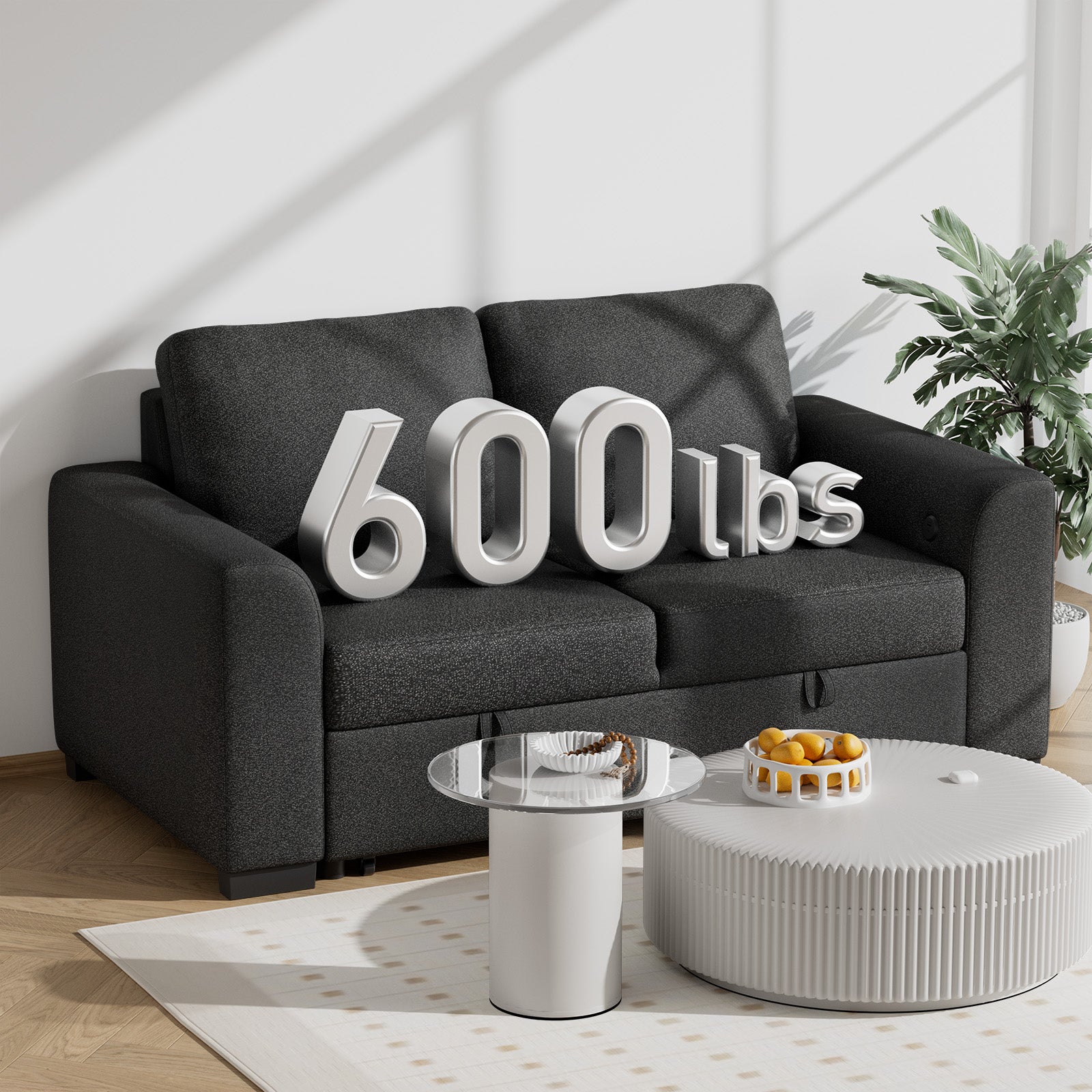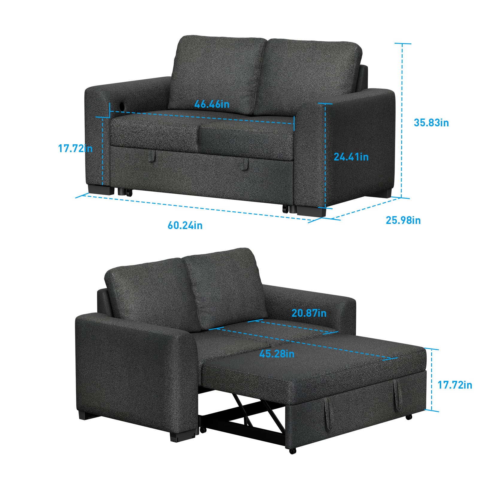 CHITOOMA 60'' Pull Out Sofa Bed Convertible Sleeper Couch with Charging Port, Upholstered Sectional Sofa with 2 Pillows, Reclining Sofas for Living Room, Black
