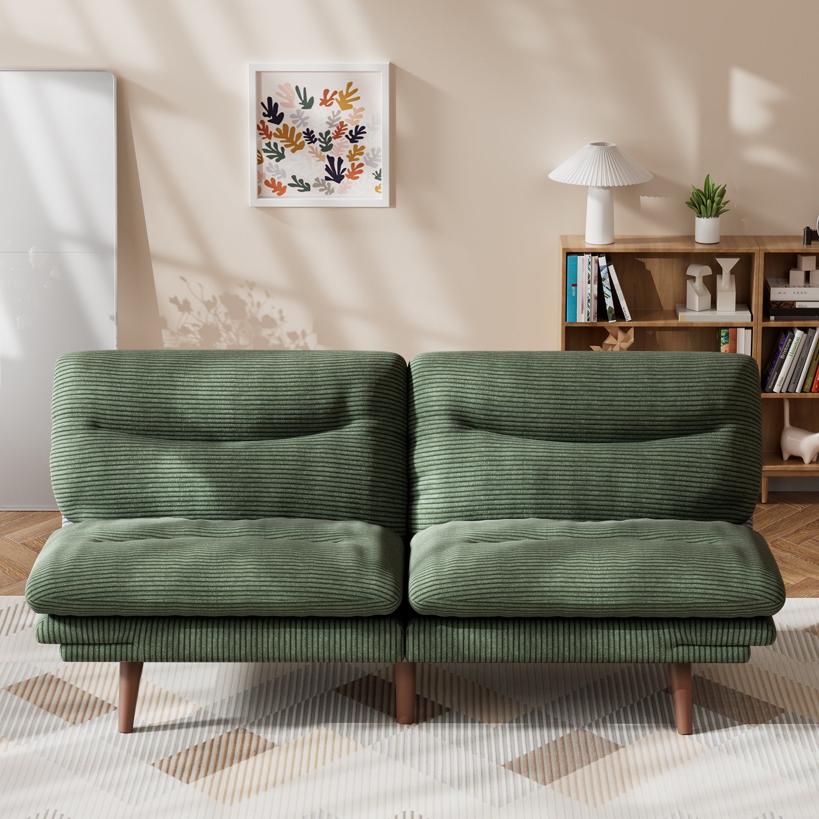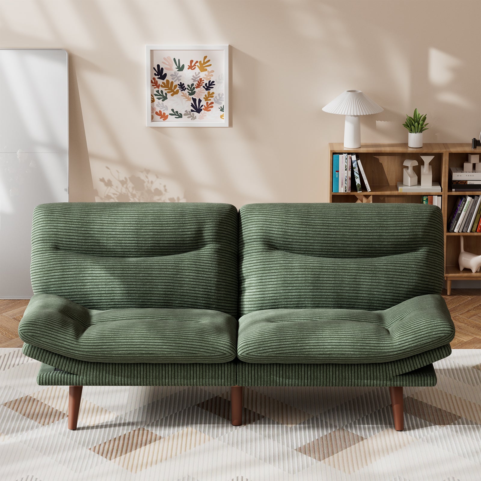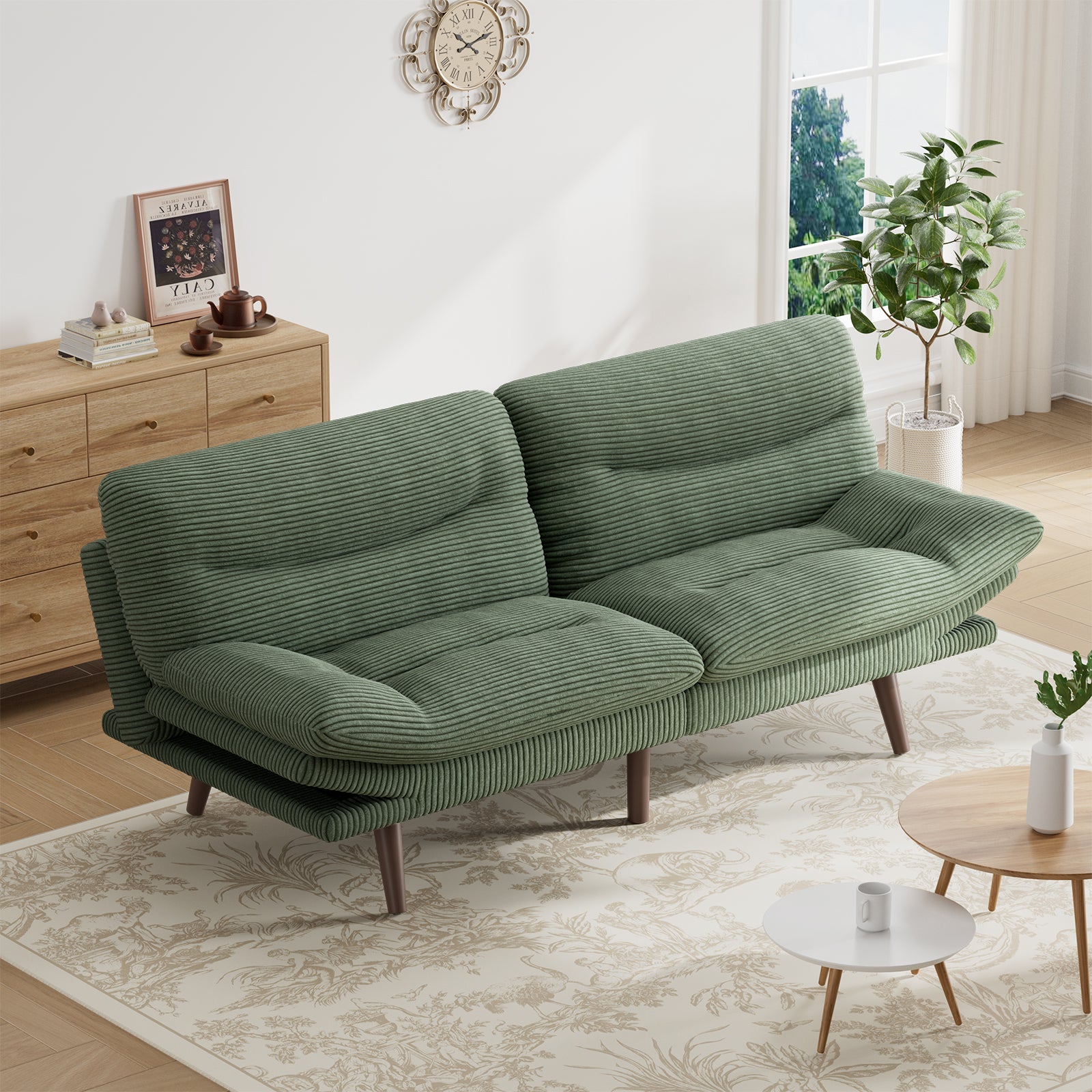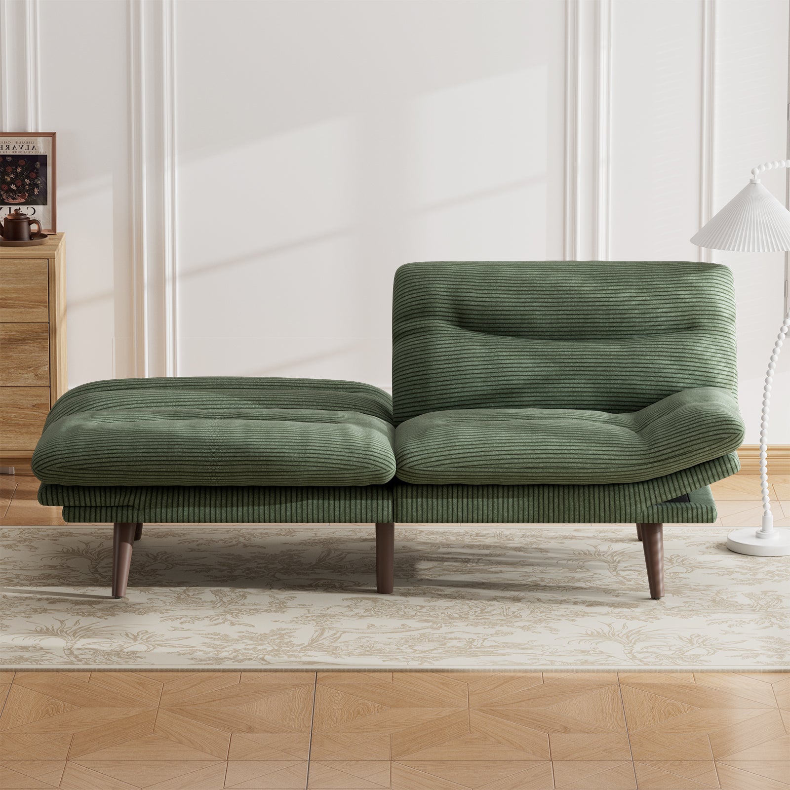 CHITOOMA 75" W Corduroy Convertible Futon Sofa Bed with Adjustable Backrest & Armrests, Comfy Loveseat Folding Sleeper Sofa Couches for Living Rooms Apartment Office, Green