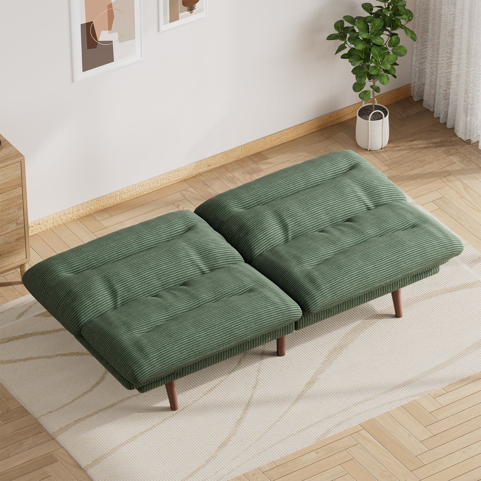 Are you looking for an exceptional addition sofa to your home? Look no further than the CHITOOMA Corduroy Futon Sofa Bed – a transformative piece that can elevate any compact living space into a versatile and stylish hub. Our futon sofa bed offers unparalleled versatility and functionality. With three adjustable backrest heights, it seamlessly transitions from a loveseat at 105° to a recliner at 160°, and fully reclines to 180° to provide a comfortable sofa bed. Crafted from high-quality materials, the CHITOOMA convertible sofa bed boasts durability and a long lifespan. The solid wood legs ensure stability and safety, and the product undergoes rigorous testing for quality assurance. Enjoy a firm and comfortable sitting experience with our high-quality foam seat and back cushion, perfect for a good night's sleep. Plus, the 8.7-inch high couch feet allow the sweeper to pass through at will, keeping the underside of the couch clean. Don't miss out on the opportunity to enhance your living space with the CHITOOMA Corduroy Futon Sofa Bed. With its stylish design, durable construction, and multifunctional capabilities, it's the perfect choice for those seeking both comfort and aesthetic appeal. Order yours today and transform your home into a haven of relaxation and style!