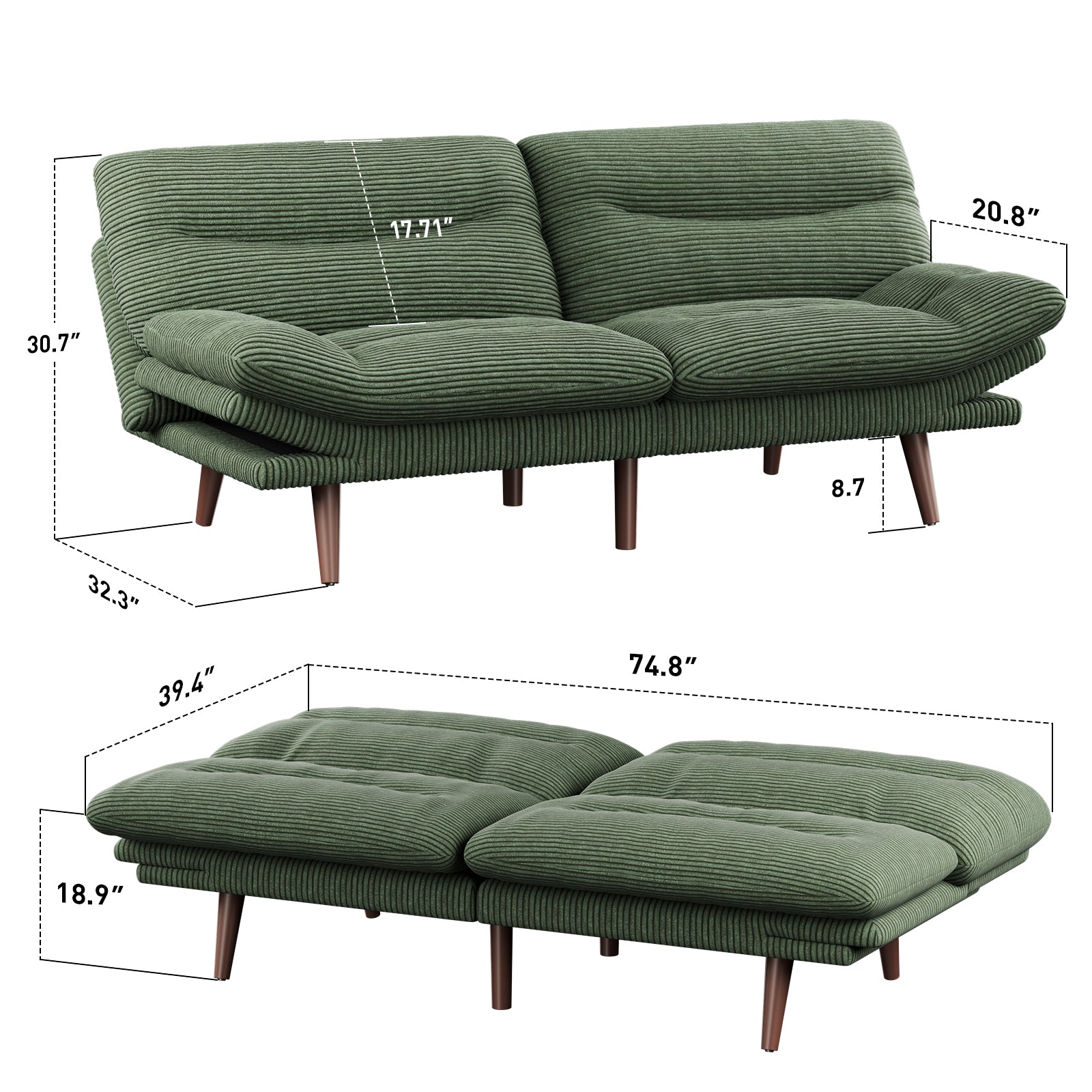 Additional Features: Versatile,Convertible,Foldable,Easy to Assemble,Sofa Bed,Adjustable Back Support,Great addition,8.7-inch High Couch Feet ,Super soft and comfortable