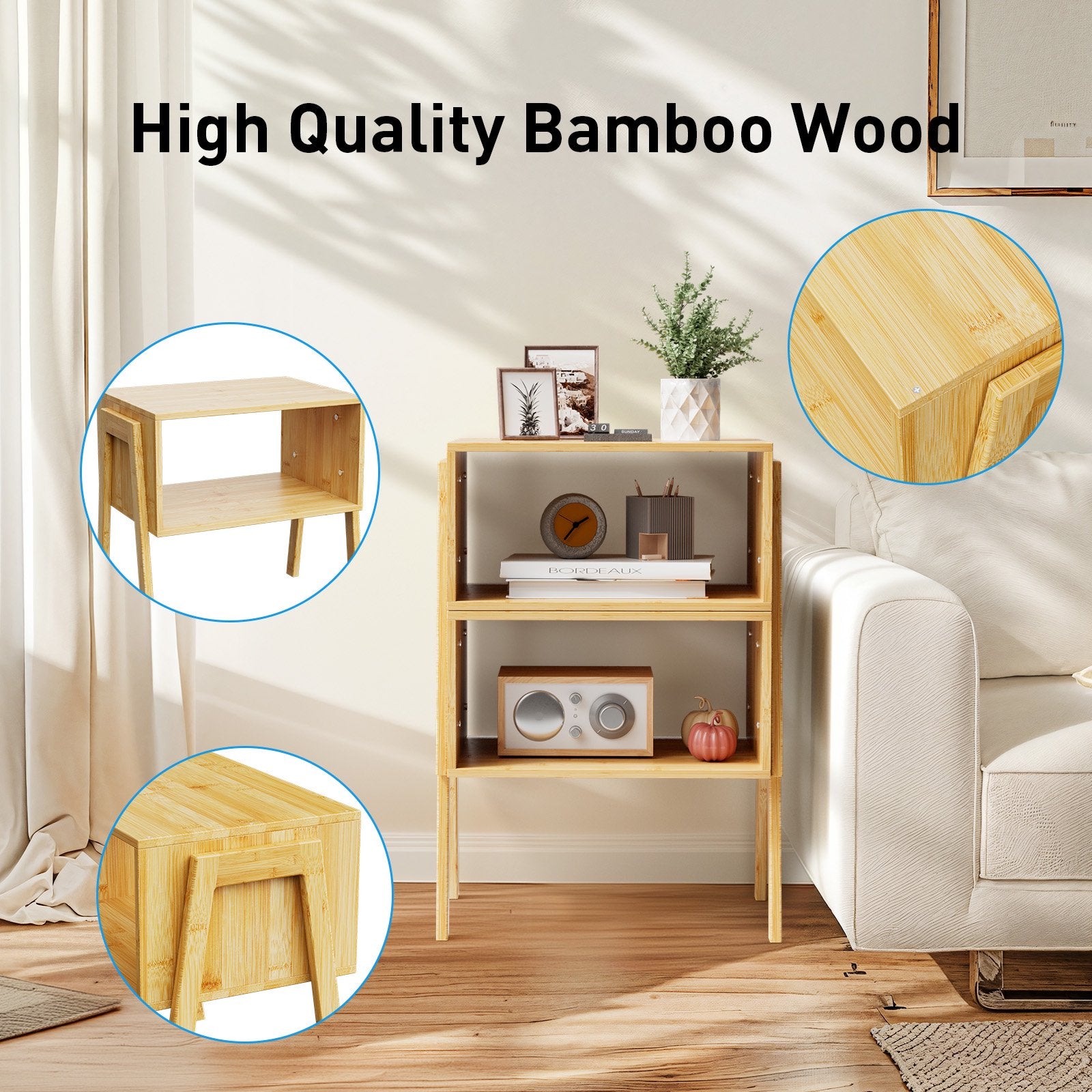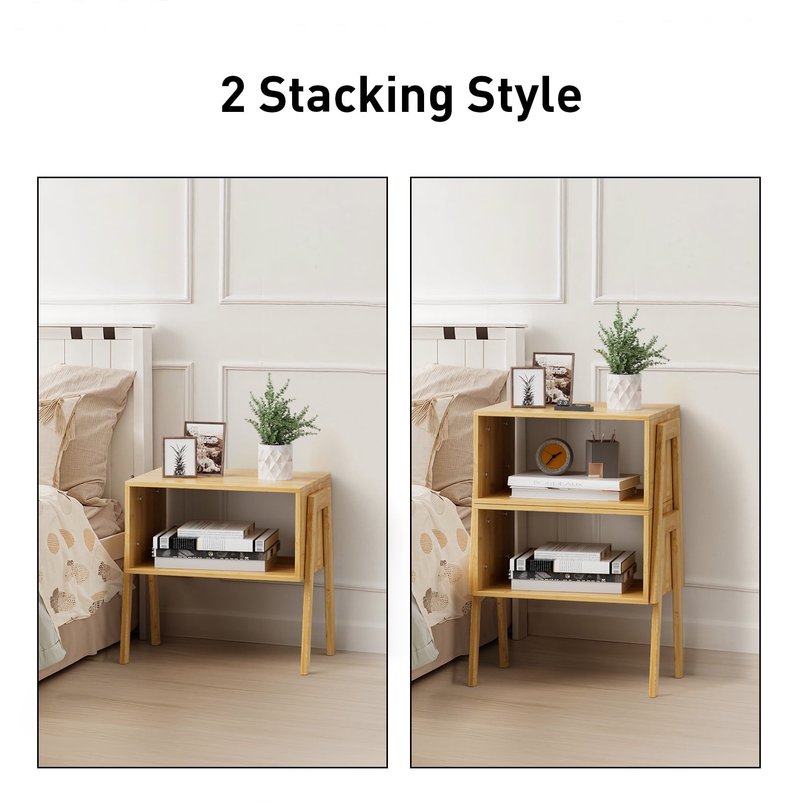 - Stackable Design for You: Our Bamboo nightstand supports a stackable design, allowing you to stack 2 end tables together to create a 24.9 inch tall 3-tier, or use them separately to fully maximize your living space and meet different placement needs.