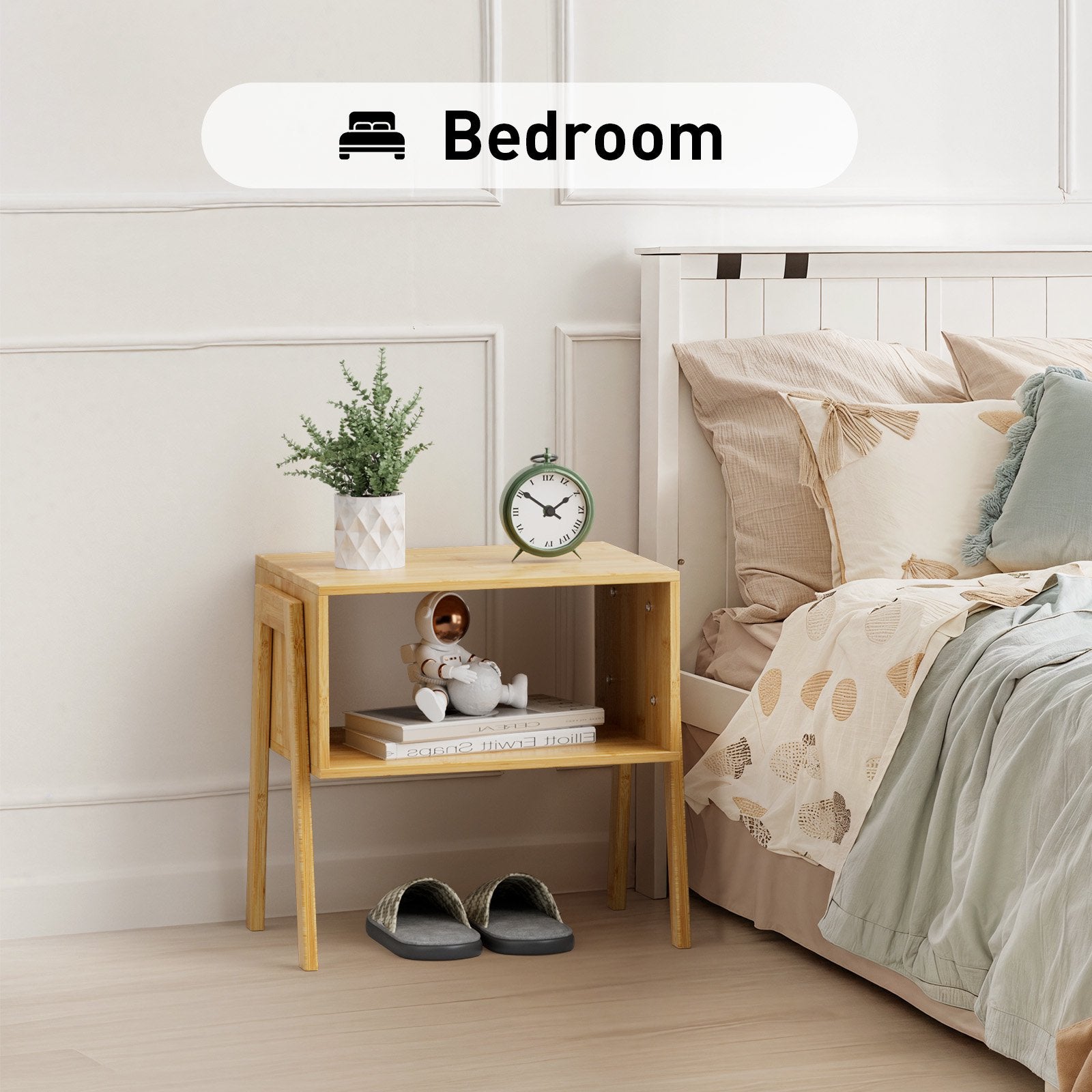 - Durable Bamboo Construction: Crafted from high-quality bamboo, each nightstand can hold up to 25 lbs. Bamboo is not only an eco-friendly and sustainable material but also offers excellent durability and strength, ensuring long-term use without warping.