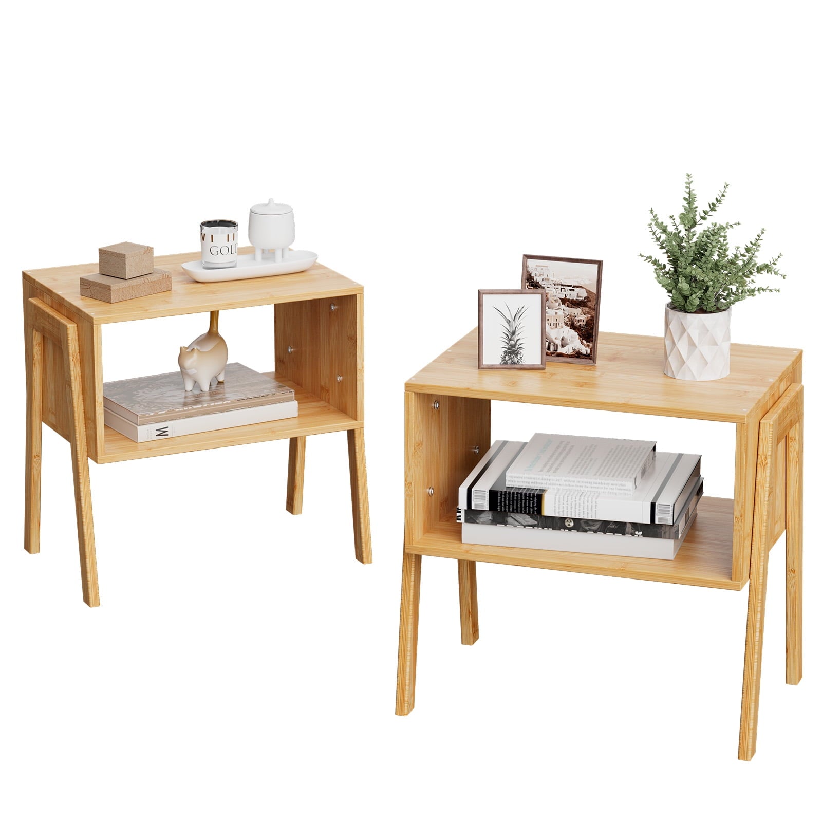 CHITOOMA Bamboo Nightstand for Bedroom Living Room,Versatile Stackable End Tables for Storage,Wood Beside Table,2-set,Natural