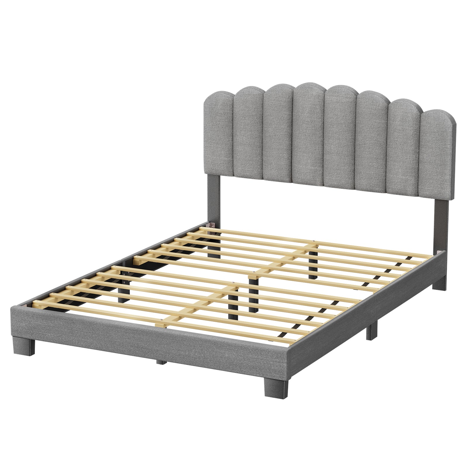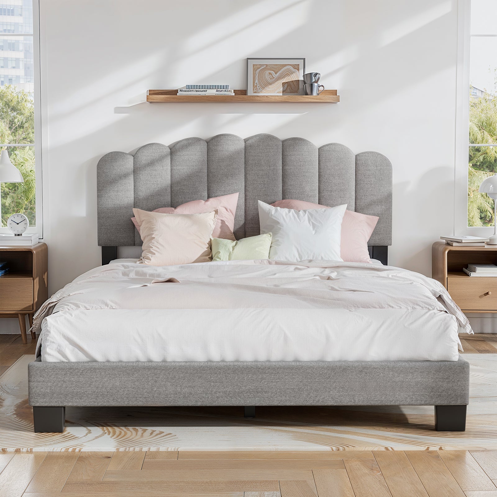 Curved Linen Upholstered Bed with Adjustable Headboard Features