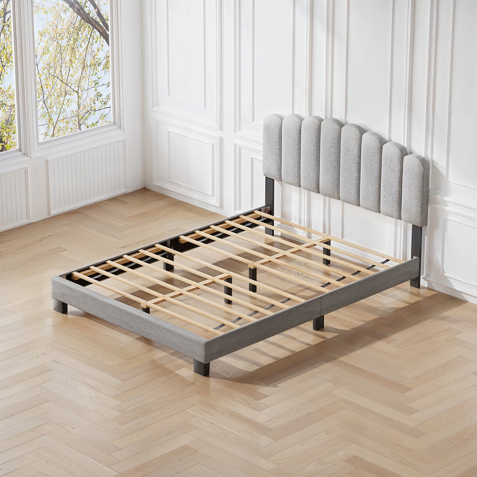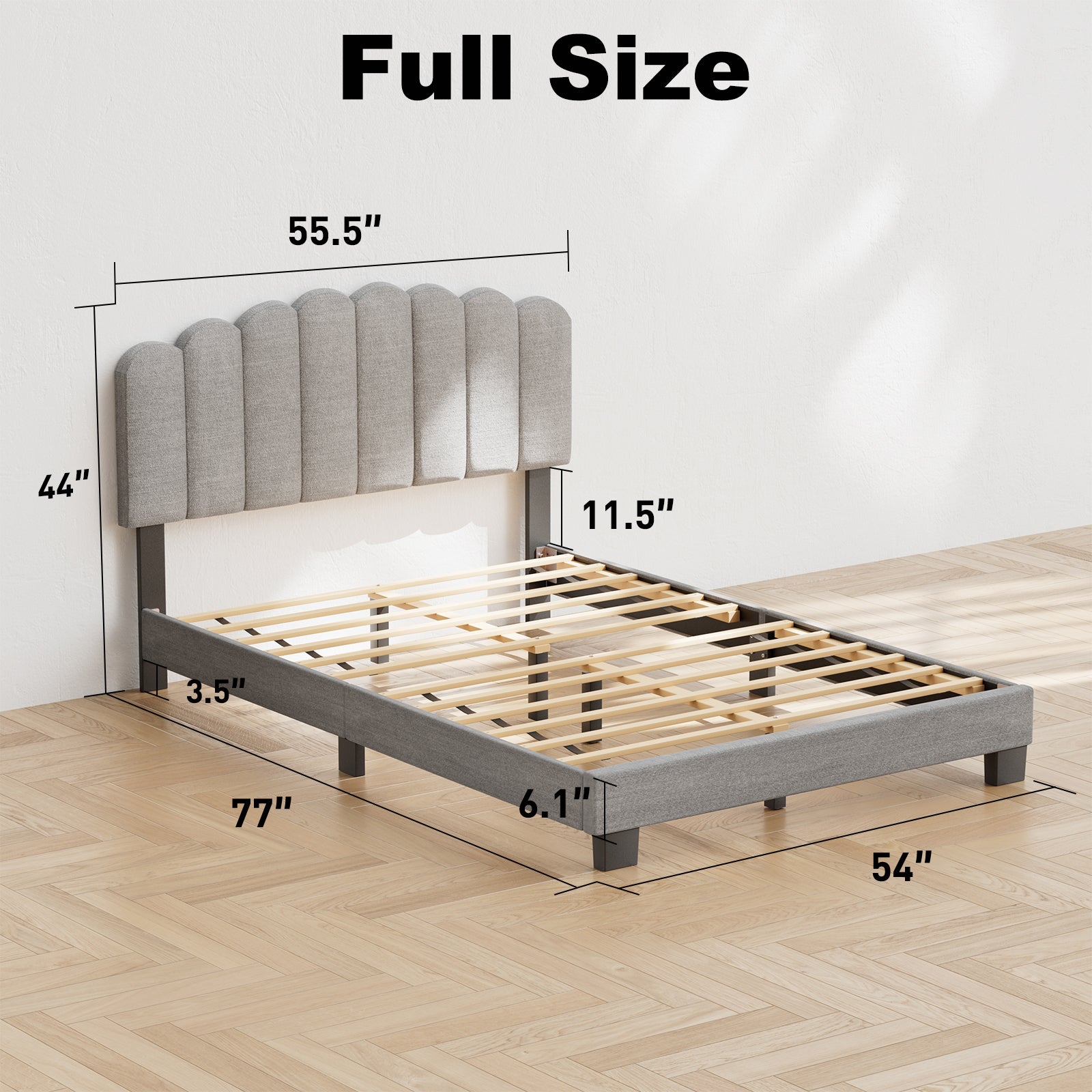 CHITOOMA Full Size Bed Frame with Adjustable Headboard, Grey Linen Upholstered Platform Bed Frame Full No Box Spring Needed, Noise-Free, Heavy Duty