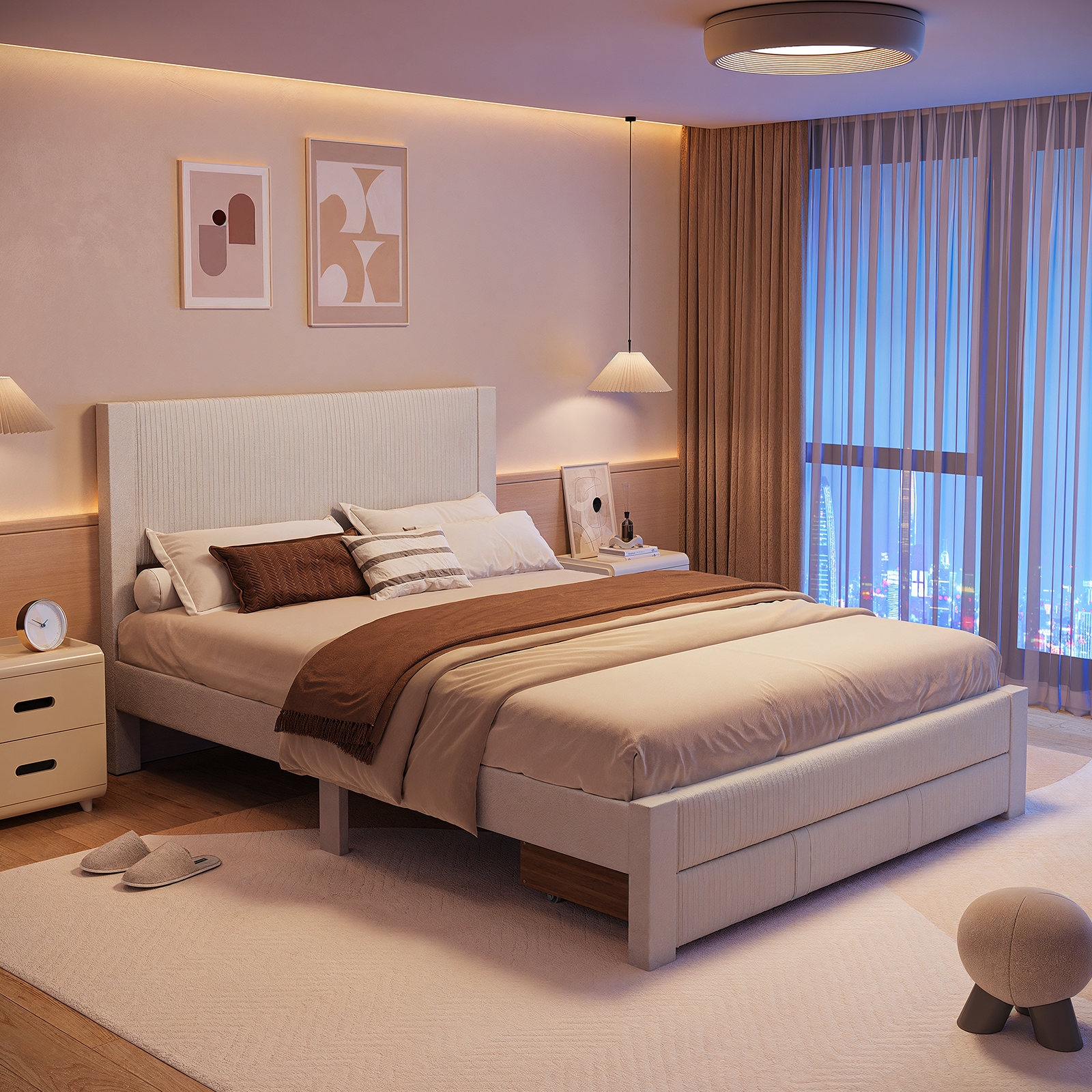 - Velvet Headboard: The padded velvet headboard offers excellent comfort and support, making it perfect for relaxing, reading, or watching TV in bed.