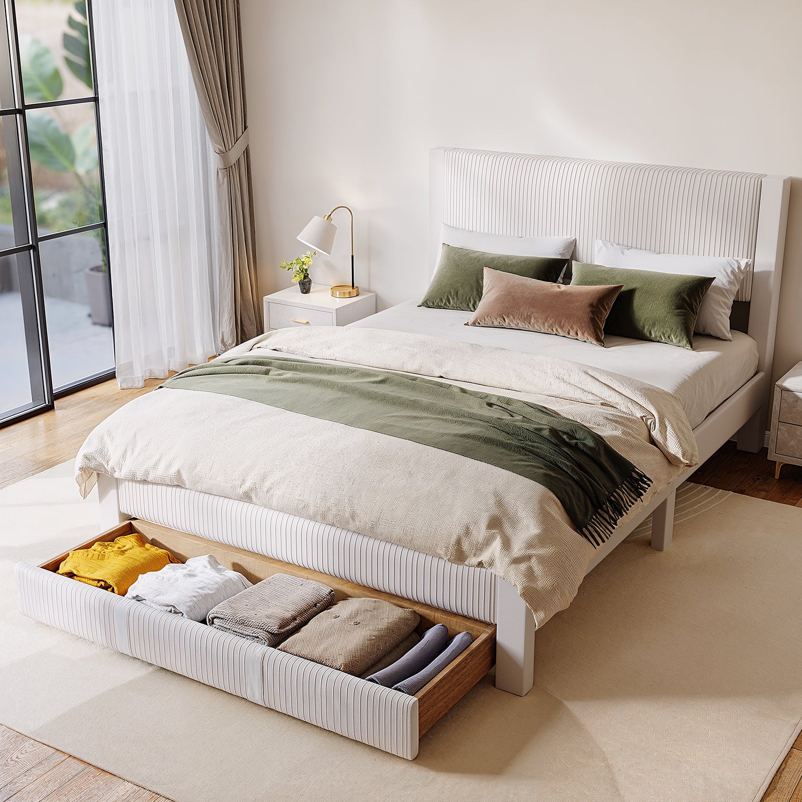 - Built-in Storage Drawers: The bed features a spacious storage drawer at the end, providing additional space to store essentials and keep the bedroom organized.