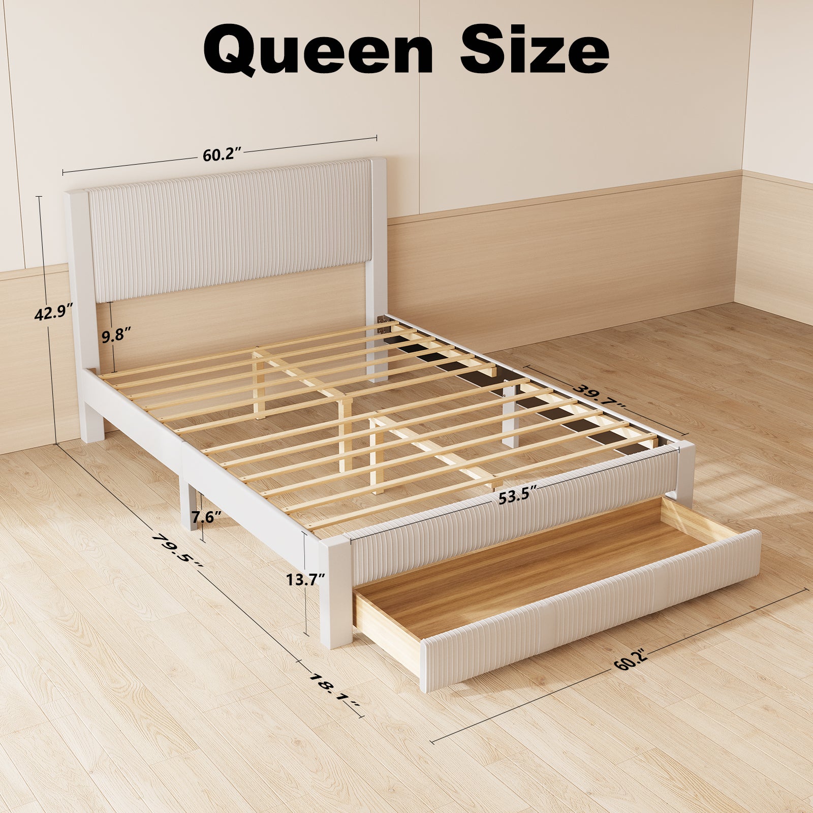 CHITOOMA Queen Bed Frame with Headboard, Velvet Upholstered Platform Bed Frame Queen Size with Storage Drawers, No Box Spring Needed, Heavy Duty, White