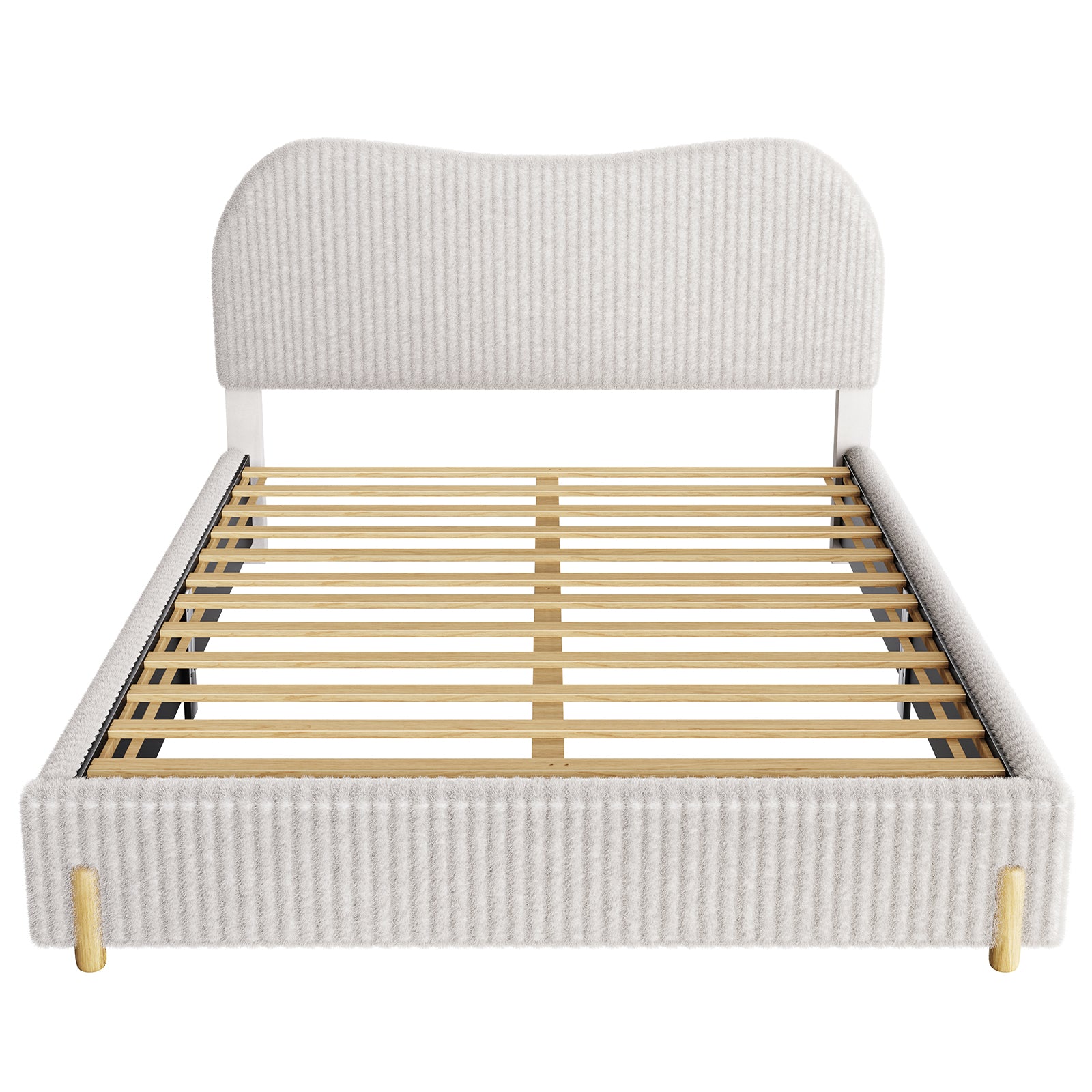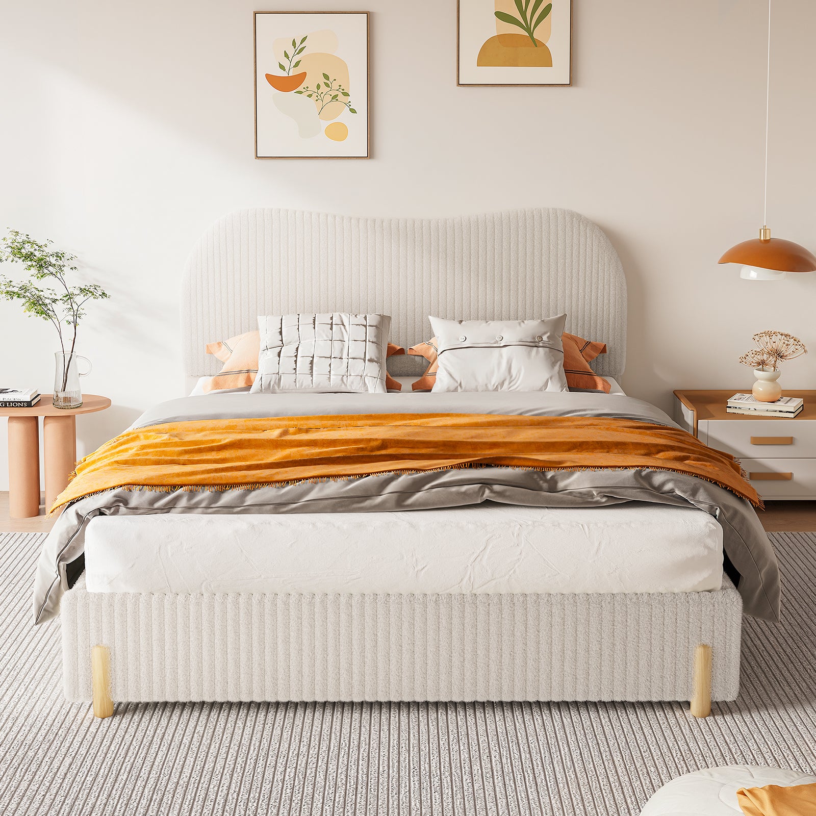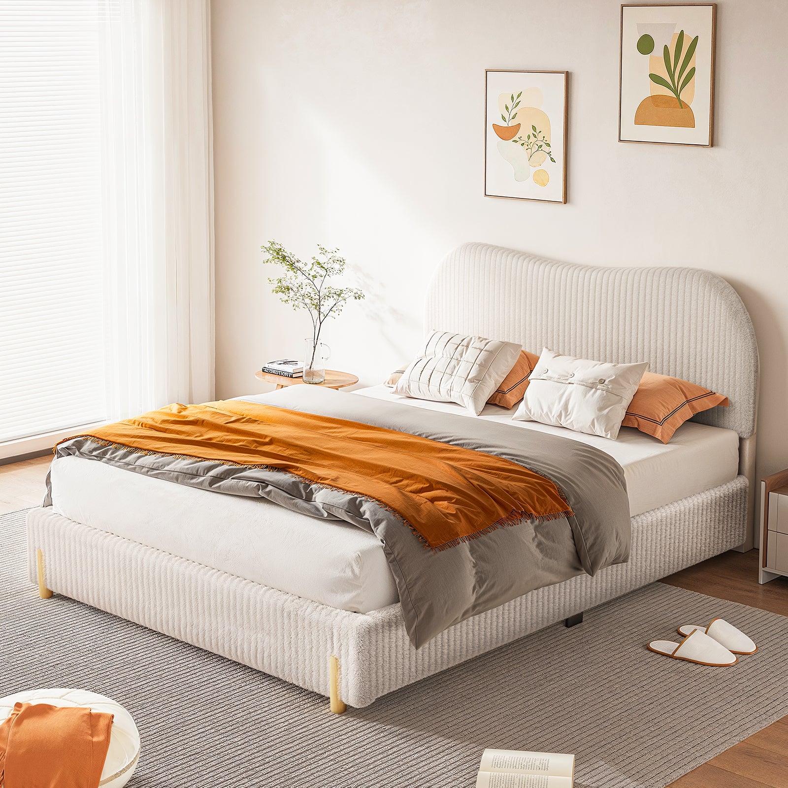 The Velvet Vertical Stripe Upholstered Bed Frame combines luxury and practicality with its stylish design, plush velvet material, and durable construction. The cute, curved headboard not only adds to the elegance of the piece but also enhances comfort for reading or relaxing in bed. Easy to assemble and requiring no box spring, this bed frame is a chic, functional addition to any bedroom.