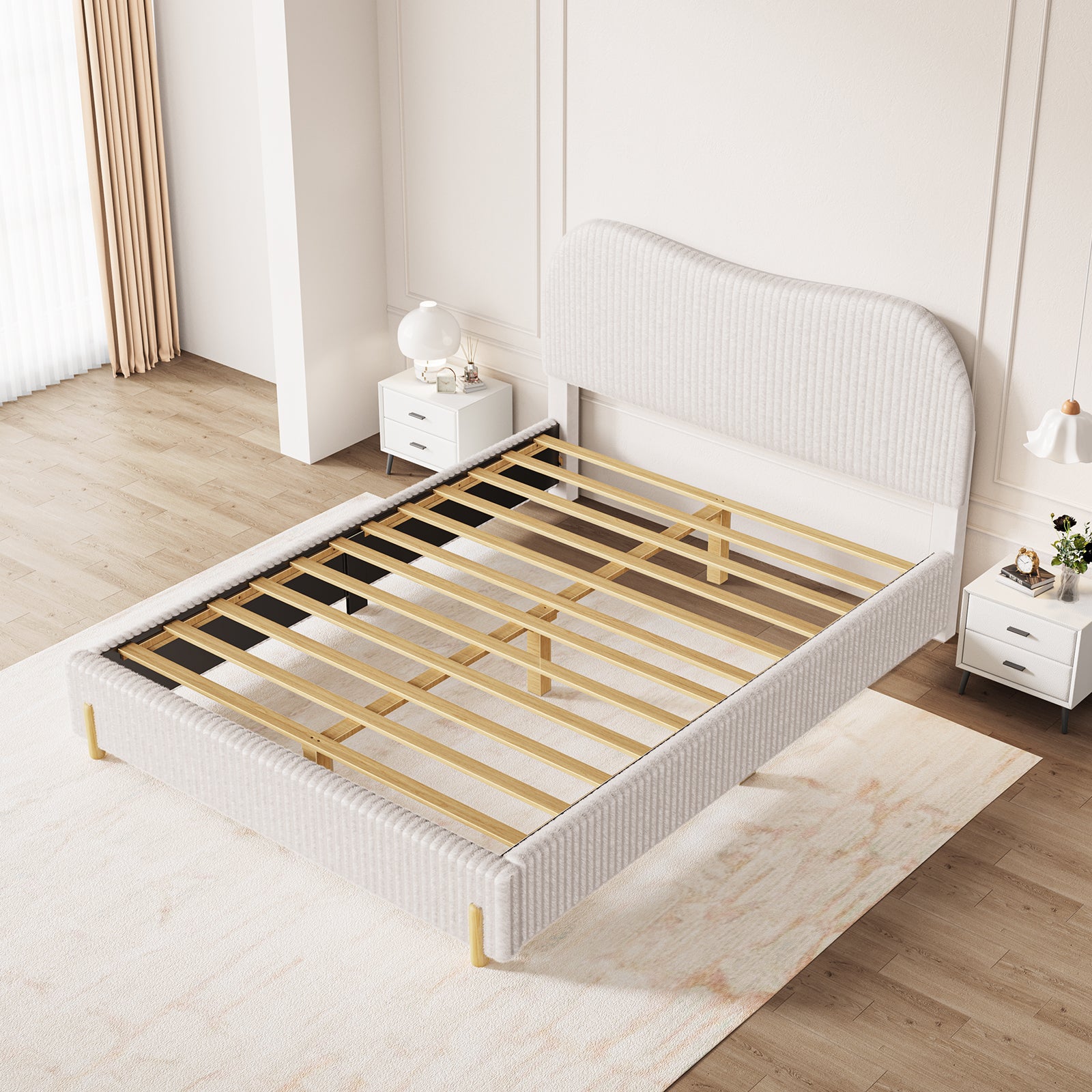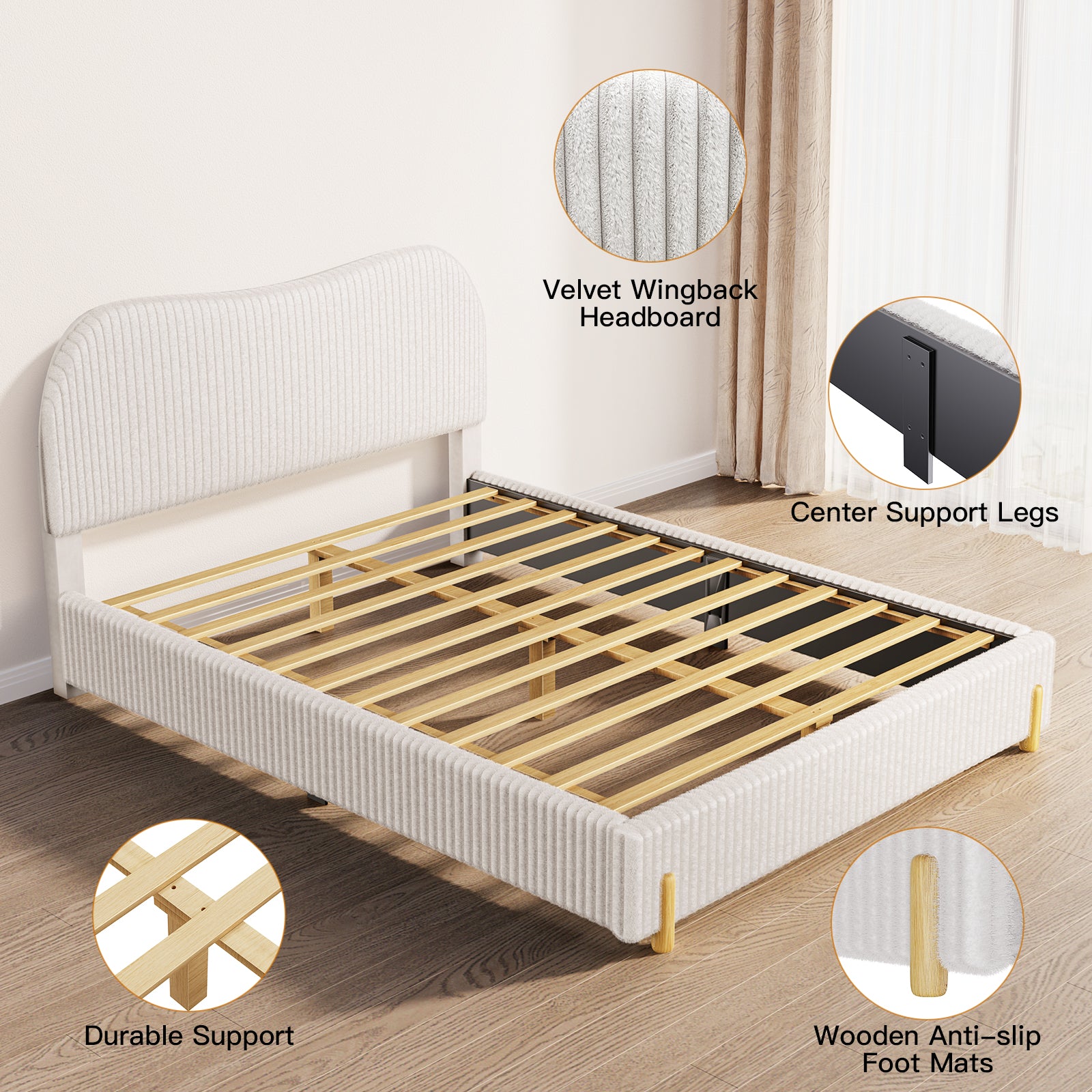 CHITOOMA Queen Bed Frame with Headboard, White Velvet Upholstered Platform Bed Frame Queen Size No Box Spring Needed, Noise-Free, Heavy Duty