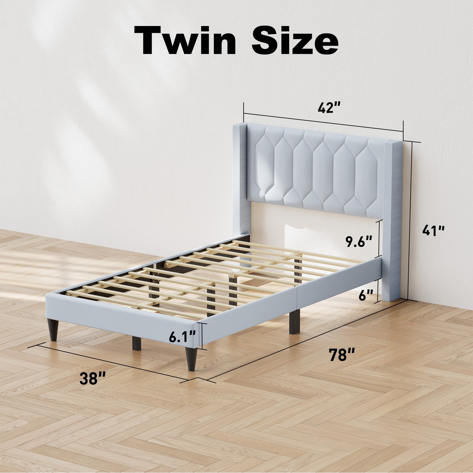 CHITOOMA Twin Bed Frame with Wingback Headboard, Velvet Upholstered Platform Bed Frame Twin Size No Box Spring Needed, Noise-Free, Heavy Duty, Light Grey