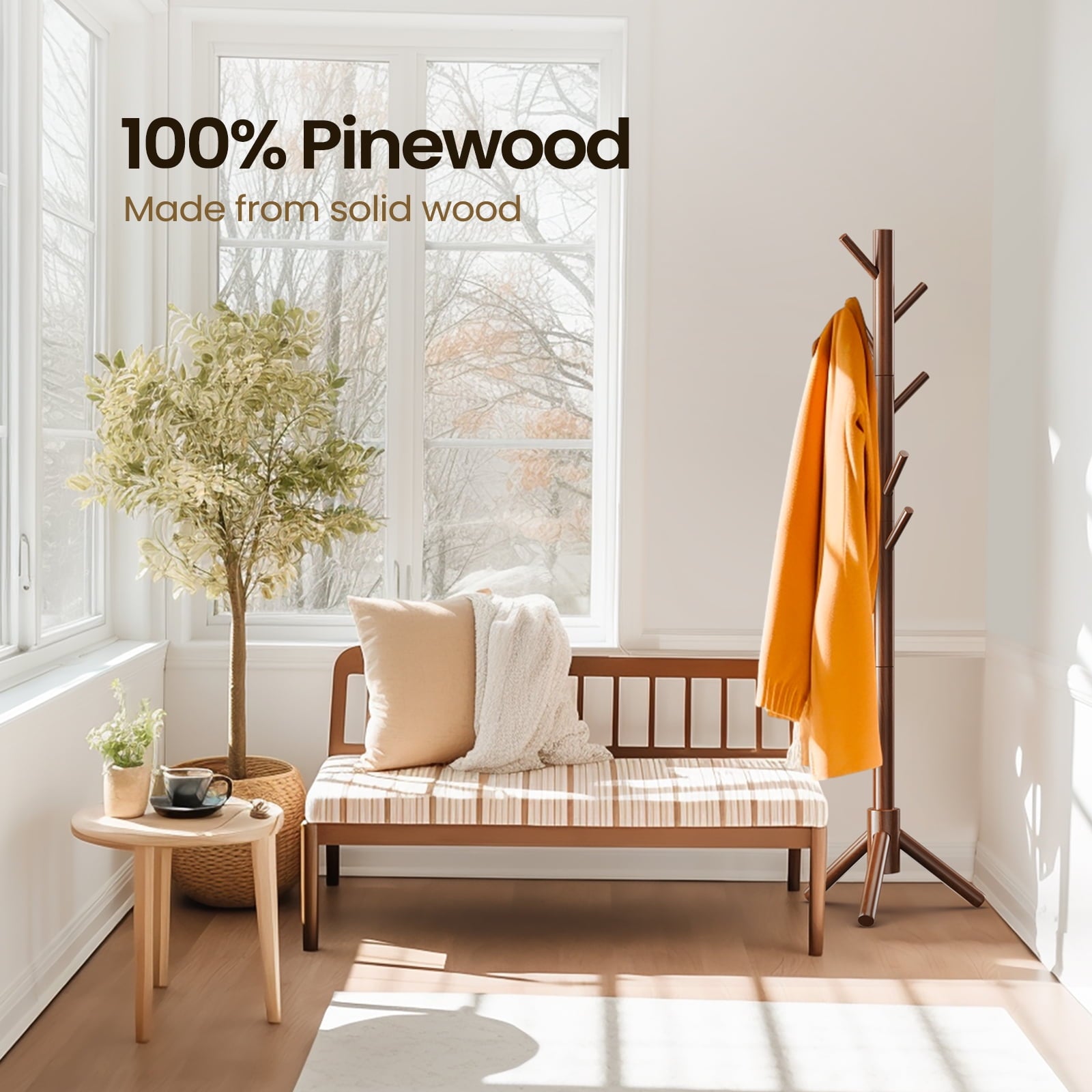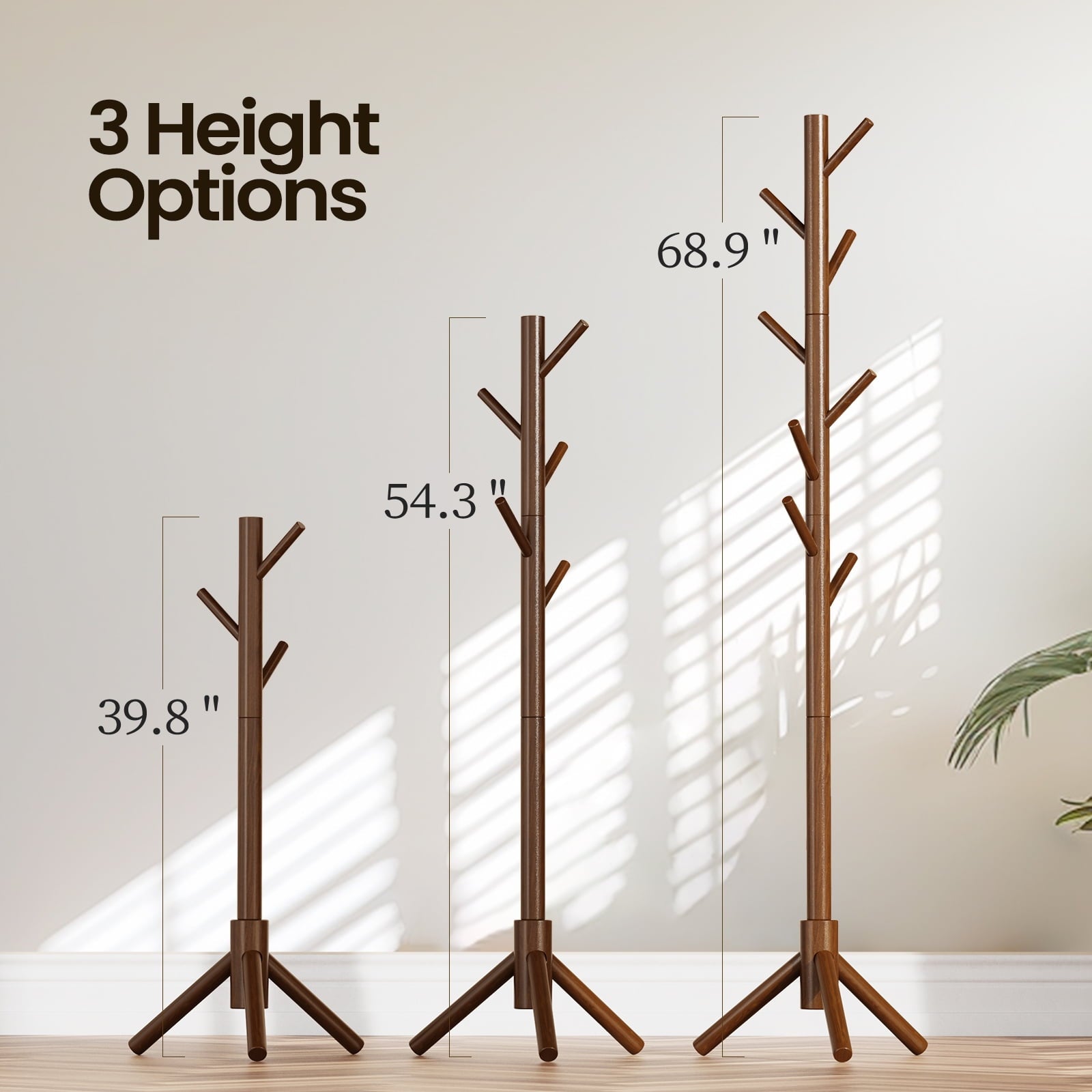 Coat Rack Stand, Coat and Hat Hanger Freestanding Standtree, 8 Hook and 3 Adjustable Heights Coat Tree, Home, Office, Entryway, Hallway
