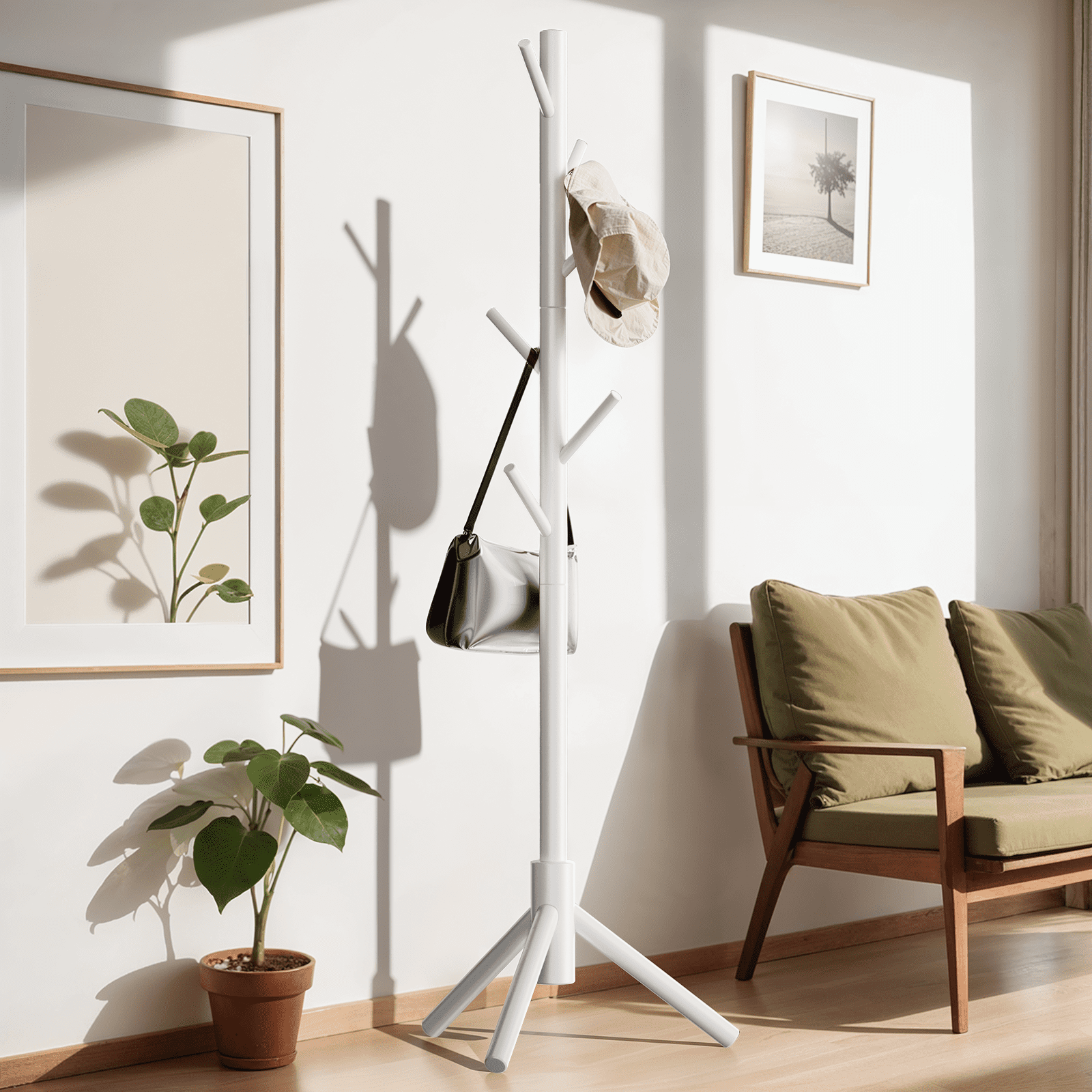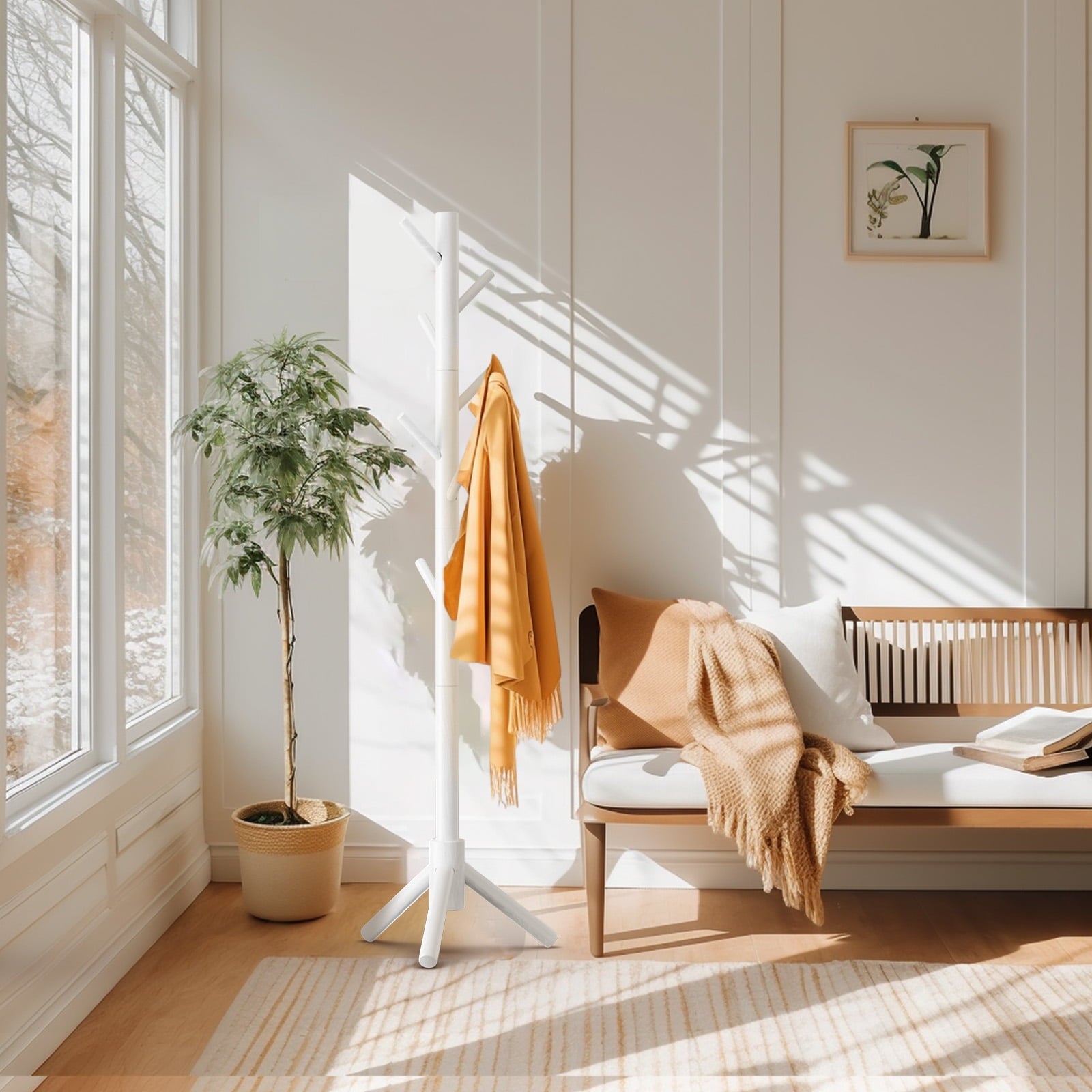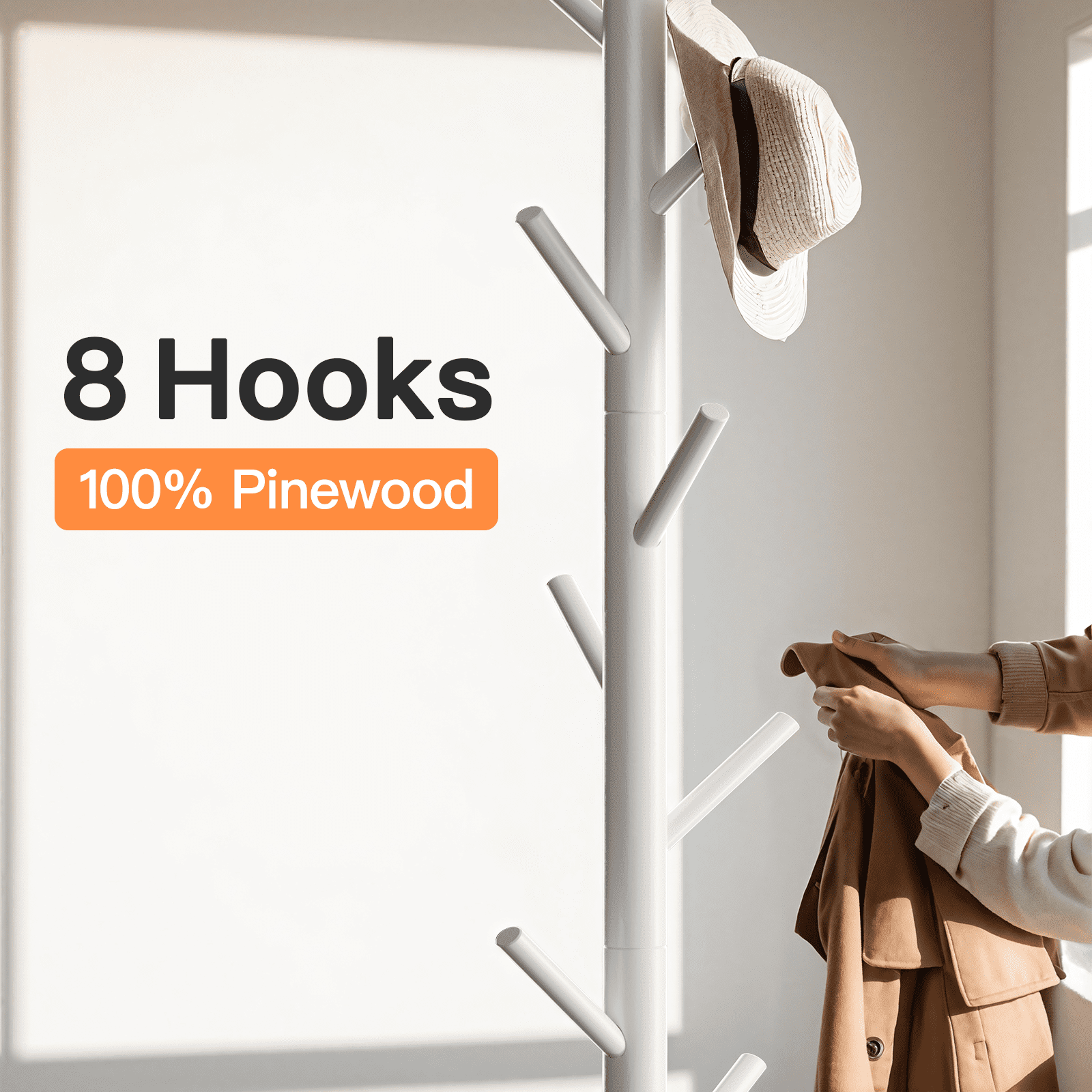 This coat rack is a must-have for your entryway. Crafted from select, solid pine wood, this coat rack stand is built for durability. Eight clothing hooks provide you with plenty of space to hang jackets, bags, scarves, hats, and more.