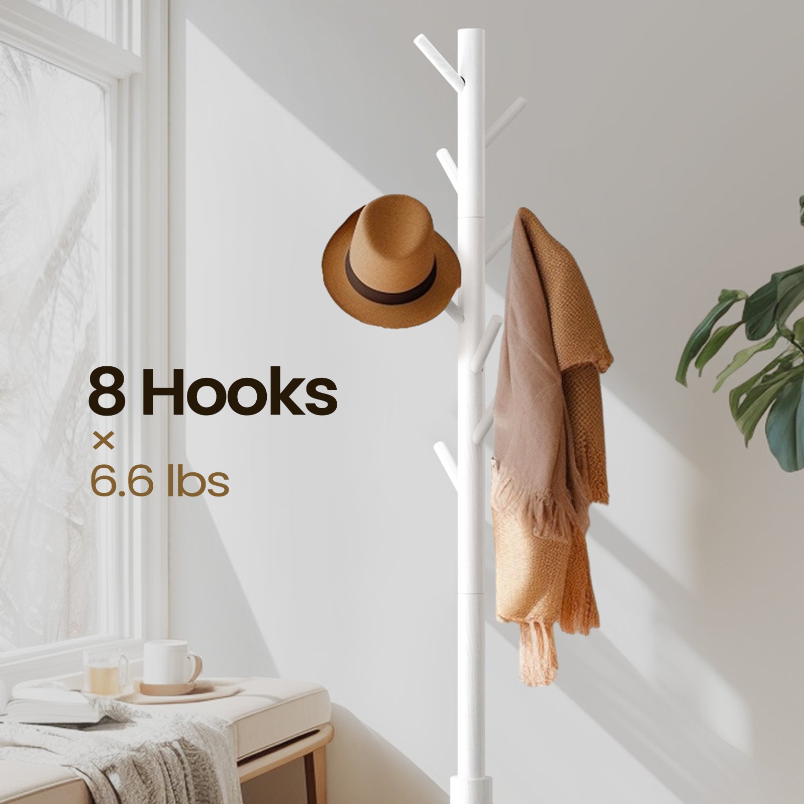 - Sufficient Storage Space: The coat rack includes 8 storage hooks to provide plenty of space to hang items including clothing, bags, hats, umbrellas, and more. The wooden coat rack can help to keep your living space tidy and organized