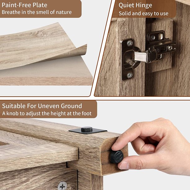 - [HIGH-QUALITY MATERIAL]: Made of high-quality wood, this unit is safe and sturdy with panels constructed of thick material and solid, integrated wood legs to ensure maximum stability. The finished surface of the cabinet is moisture-resistant and easy to clean