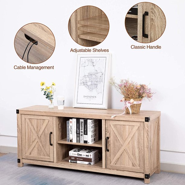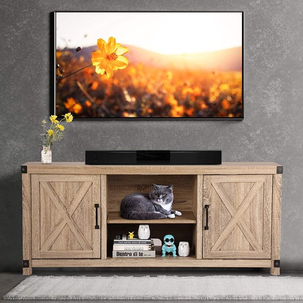Console Cabinet for 65 Inch TVs with Media Shelves TV Stand Entertainment Center for Soundbar Barn Door TV Stand with Storage for Living Room - Walmart.com