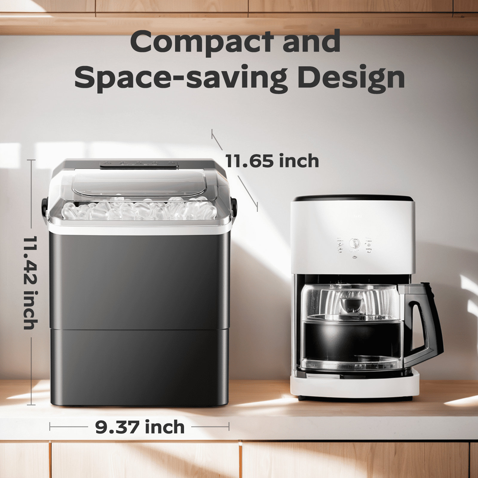 - Compact and Portable Design: Measuring only 1.65"D x 9.37"W x 11.42"H and weighing around 14 pounds, Philergo countertop ice makers are easy to carry with a convenient carry handle, they are perfect for both home use and on-the-go events, ensuring you can enjoy ice wherever you are.