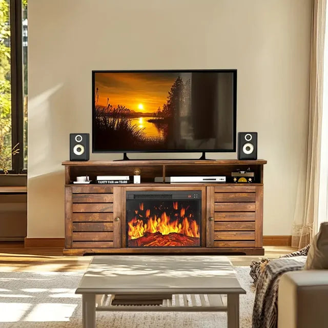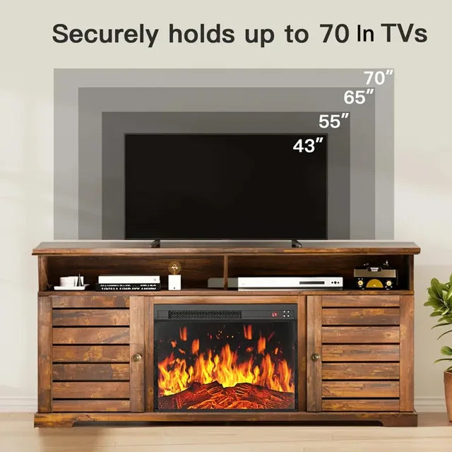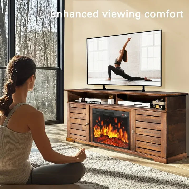 Our 2-in-1 fireplace TV stand combines an entertainment center with a 23" electric fireplace, offering extra-large storage for TVs up to 70". Its 1400W heating system warms air in 5 seconds, with 9 temperature settings, 4 flame brightness levels, and a timer, all controllable via a panel or remote. Crafted from premium MDF, it supports up to 200 lbs. Adjustable shelves and cable management ensure a clean, organized look while blending seamlessly with your decor.