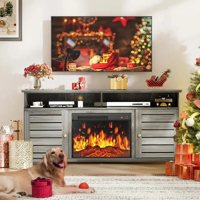 Electric Fireplace TV Stand for 70/65/60/55 Inch TVs, Farmhouse Entertainment Center with 23" Electric Fireplace with Storage, Adjustable Led Flame, Gray