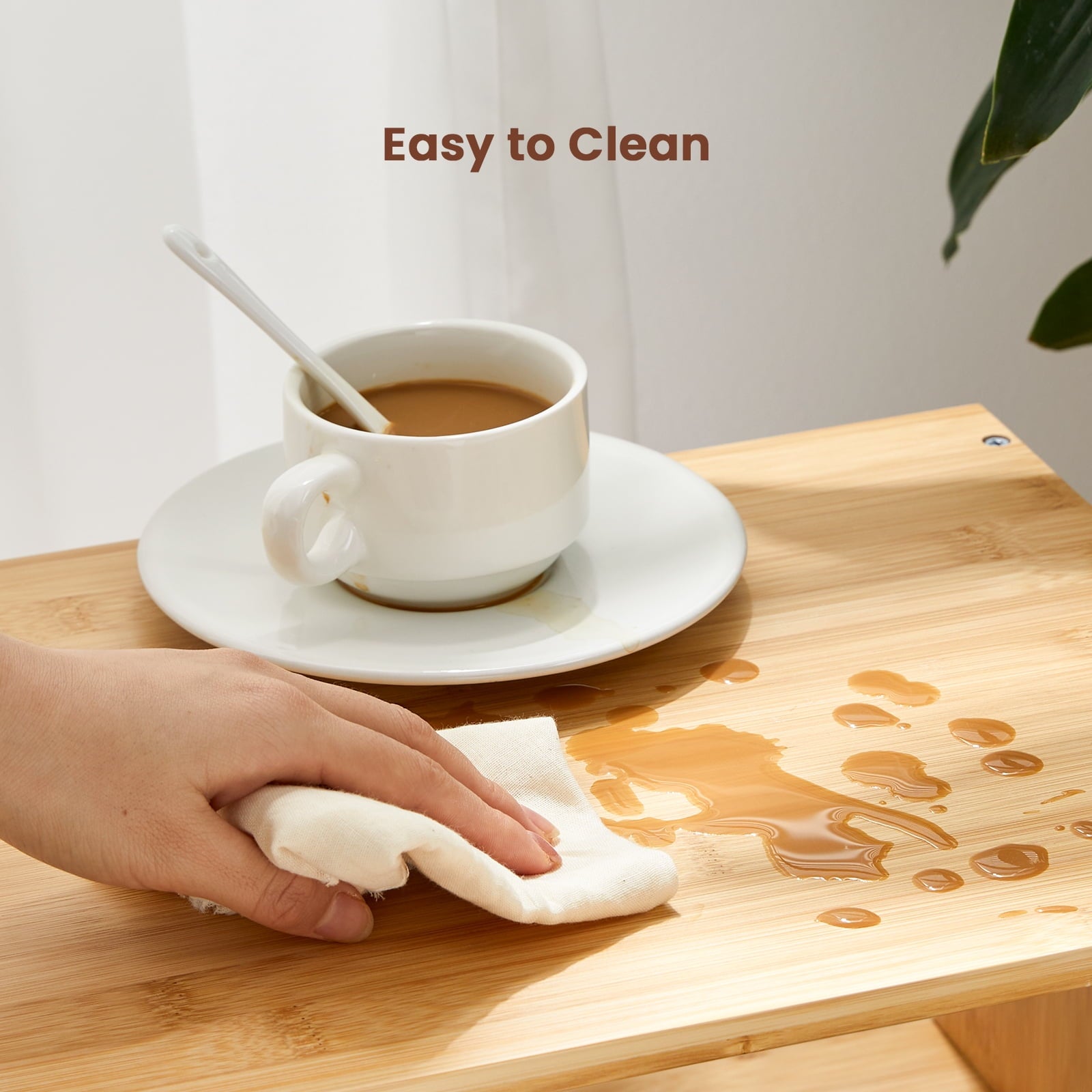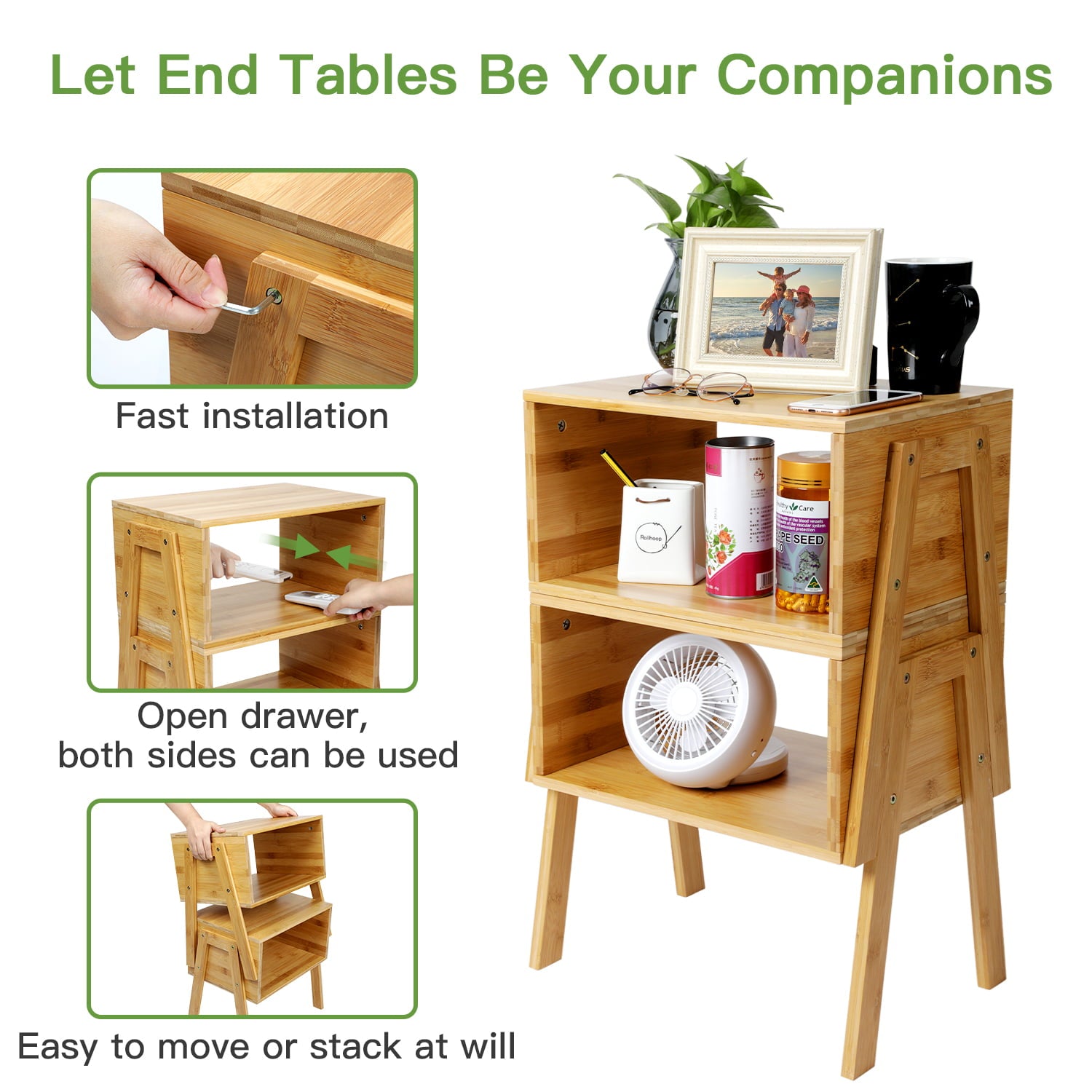 Bamboo Square Stackable End Tables, Bedside Tables Storage, Set of 2