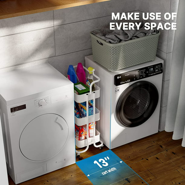 - Spacious Storage Capacity: This utility cart provides 3-tier large storage space while saving you floor space to optimize space utilization. Deep baskets are designed for preventing items from dropping. Per shelf weight capacity of up to 22lbs