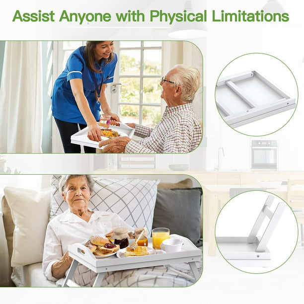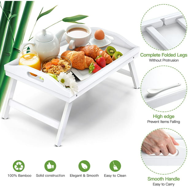 - MULTI-FUNCTIONAL USE: Ideal for serving breakfast and dinner, this breakfast tray also can be used as a writing or drawing table for work on the bed such as reading books, surfing with a laptop, writing log etc. This portable bed tray can widely use in kitchen, bedroom, bed, sofa and hospital etc
