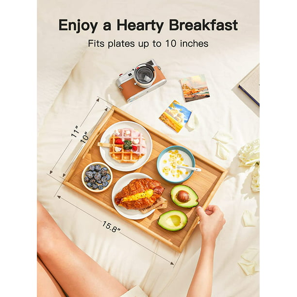 - NATURAL AND SUSTAINABLE BAMBOO: Sturdy construction is the inherent advantage of natural bamboo breakfast tray. Made from eco-friendly organic bamboo, the bed trays for breakfast are great alternative to plastic as it is a renewable and sustainable material