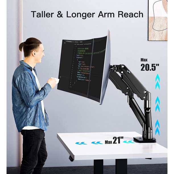 - Longer and Taller Dual Monitor Arm - Our lengthen and heighten gas spring arm to extend 21.6 inches to the front and also fit for biger and deeper desks, It can be easily raised up to 20.5"raises monitors to most comfortable eye level, allowing you to perfectly position your screens