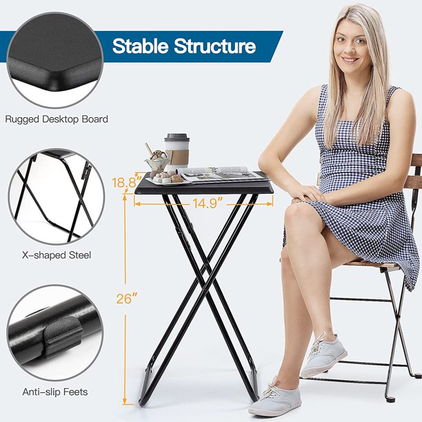 This is not only a stylish and sturdy sofa side table, but also a perfect combination of modern style and excellent design to meet the use of small spaces.you can use this tv table to share food, drinks, or other things with your family and enjoy a wonderful leisure time.this folding tv tay table is easy to be folded completely flat to store under your sofa & bed, or it can be leaned against the wall for convenient use, super efficient to save your space.x-frame design makes the table more stable.anti-slip feet prevent scratches on the floor.no assembly required, one-step foldable.