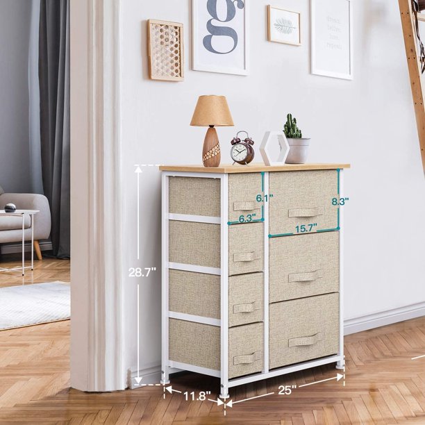 Organizing isn't boring anymore when you have an affordable fabric storage dresser. Finding things suddenly become easier. Things dont just disappear anymore. It allows you to move around your home and enjoy the space, instead of moving around things that are in the way.Create simple habits that keep you and your stuff in check. You also can share the joy of organizing with your child and let your child develop the habit of organizing and sorting from a young age with the dresser.Ample room for storage multiple items.Vertical space-saver design ideal for small space.Metal frame, in-sided thicker cardboard provide excellent durability.No-woven fabric drawer is easy to maintain with just wet cloth.Multi-purpose storage drawer unit ideal for every room throughout your home.