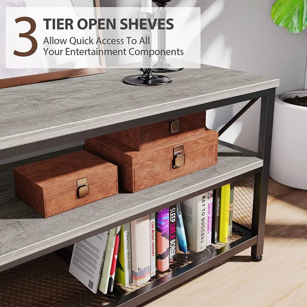 - AMPLE STORAGE ROOM -- This TV stand presents an open design with 3 tier shelves for plenty of storage space and easy organization for your entertainment component