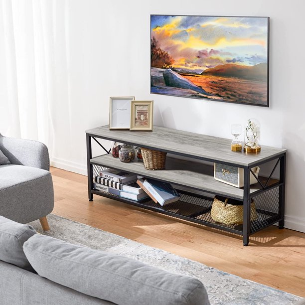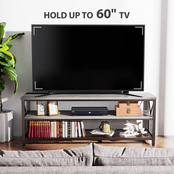 Myfurnideal TV Stand for 60" TV 3-Tier Entertainment Center with Storage for Living Room, Oak Grey - Walmart.com