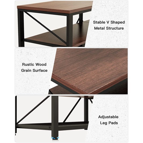 - STRONG BUILT -- Crafted of quality thickened particle board and sturdy metal frame with great durability. V-shaped metal structures on sides enhance the industrial aesthetic and provide extra stability