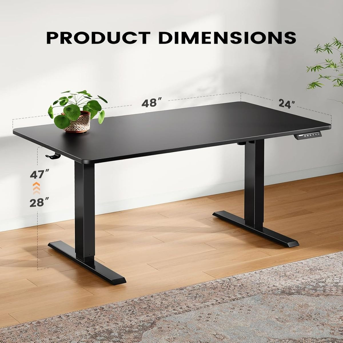 One Piece Standing Desk, 48x24 inch Adjustable Stand Up Desk with Cable Management Tray, Black