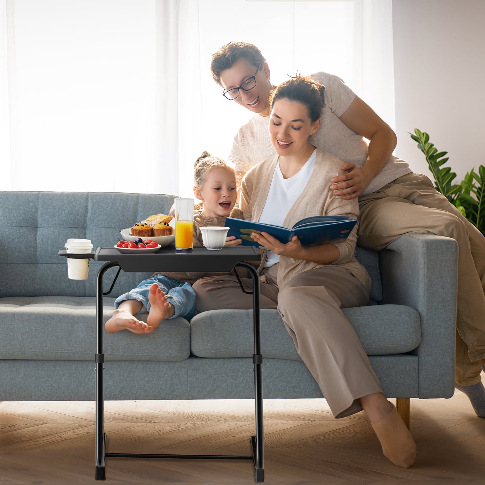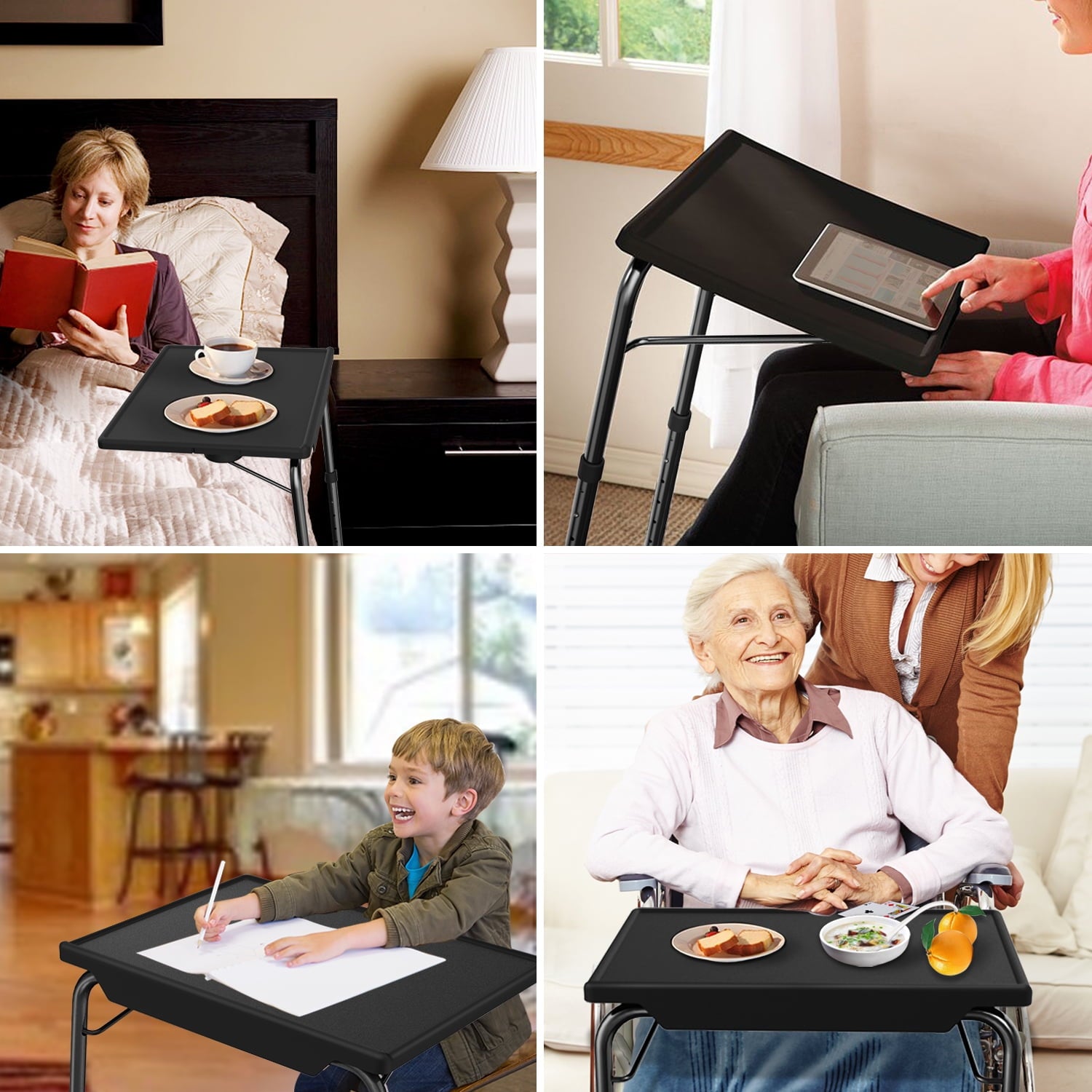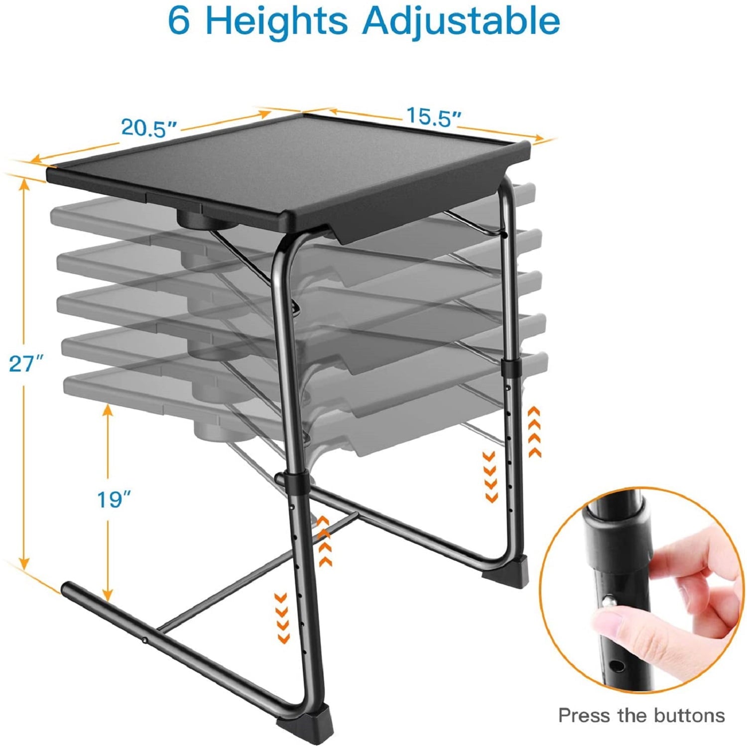 Portable Foldable 6 Height Adjustable TV Tray Table TV Dinner Tray Sofa Desk for Home Office,Black