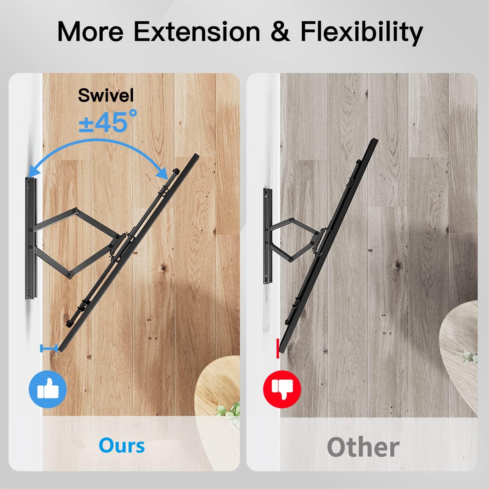 - Dual-Arm Extension: The mount features dual-articulating arms that provide an extensive range from 2.99 to 16.73 inches, allowing you to adjust the distance between the TV and the wall according to your preference.