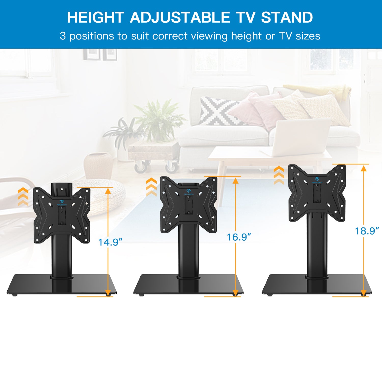 PERLESMITH Swivel Universal TV Stand for 19-39" TVs/Monitor/PC Height Adjustable with Tempered Glass Base Max 200x200
