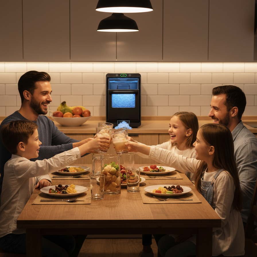 Quick Ice in Minutes: Enjoy your first batch of nugget ice in only 10–15 minutes. No more waiting hours for freezer trays—this machine delivers ice fast so you can serve chilled drinks instantly at family dinners, parties, or work breaks.