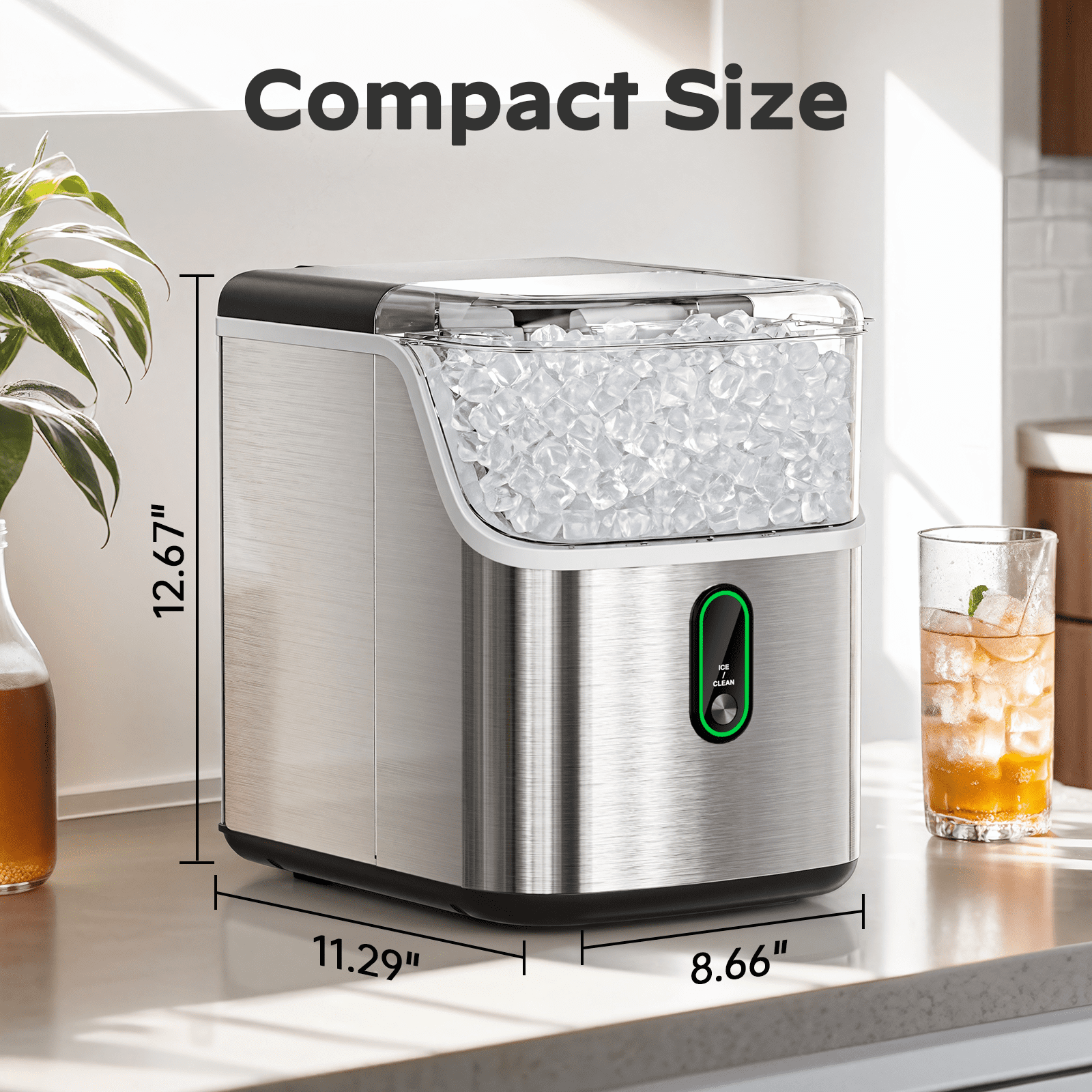 - Compact & Portable Design: Our pebble ice machine has compact dimensions of 12.67 x 8.66 x 11.29 inches. Fits on most countertops and ideal for home, kitchen, RV. Take it and enjoy the ice!