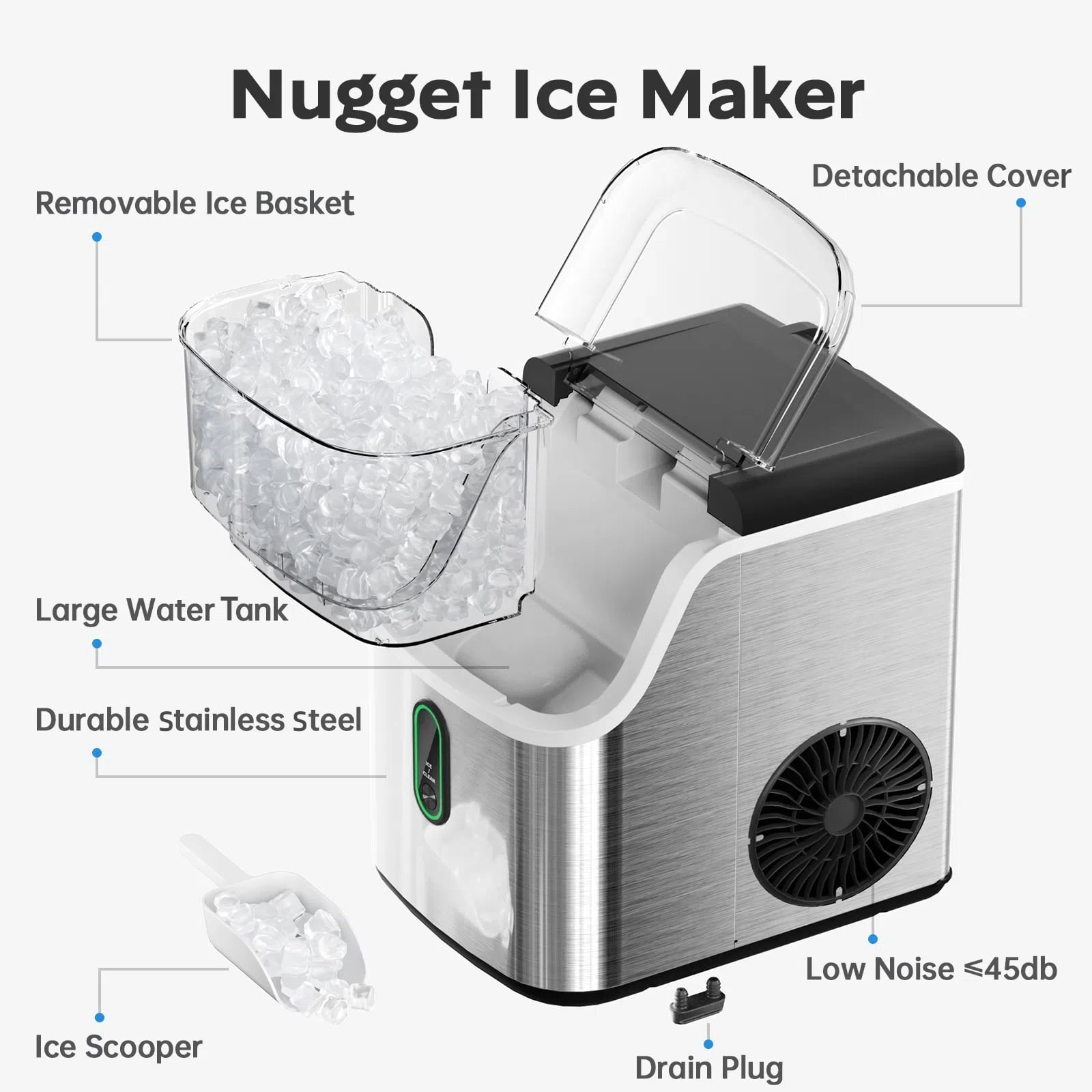 - Hassle-Free Cleaning: The built-in self-cleaning mode takes care of routine maintenance, while a detachable top allows easy access for deep cleaning when you needed. Spend less time cleaning and more time enjoying your ice!