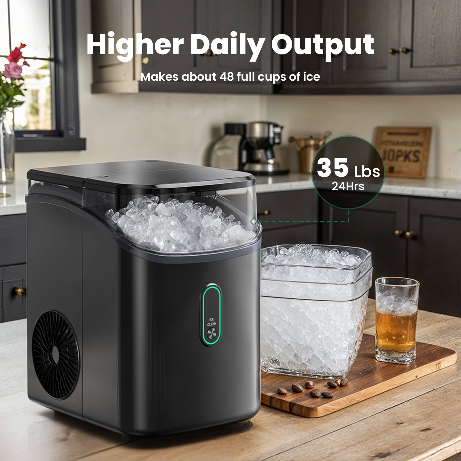 🧊Impressive Ice-Making Capacity: With a daily output of 35 lbs (about 50 cups of nugget ice), this machine is perfect for large families and gatherings. Whether you're making iced tea, coffee, cocktails, or chilling beers, it’s up to the task.