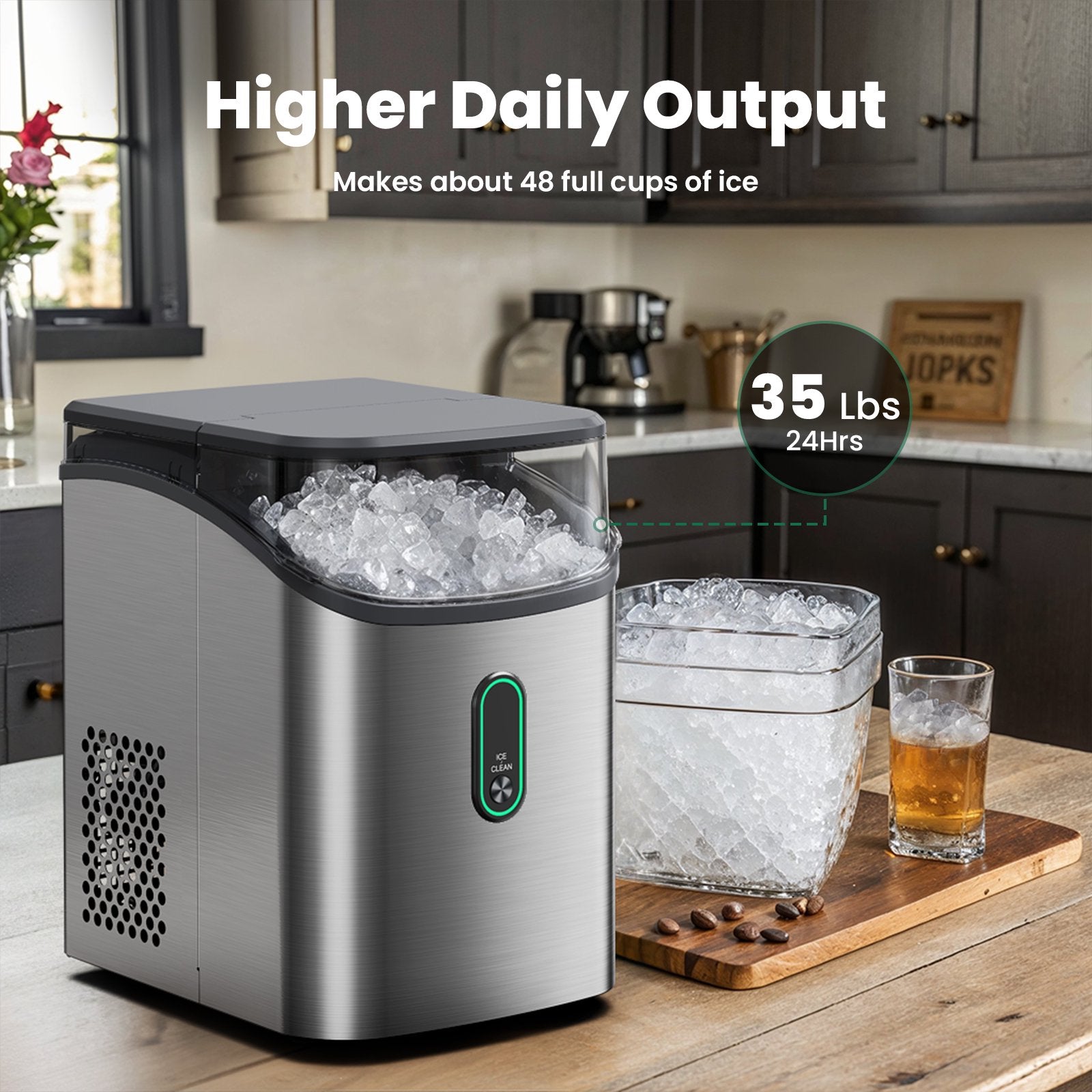 🧊Impressive Ice-Making Capacity: With a daily output of 35 lbs (about 50 cups of nugget ice), this machine is perfect for large families and gatherings. Whether you're making iced tea, coffee, cocktails, or chilling beers, it’s up to the task.