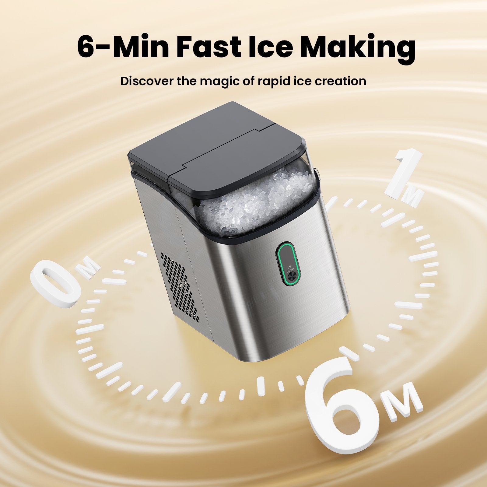 🧊Ice Ready When You Are: Say goodbye to waiting! Fresh nugget ice is ready in just 6 minutes, so you can keep the drinks flowing and the party going without pause.