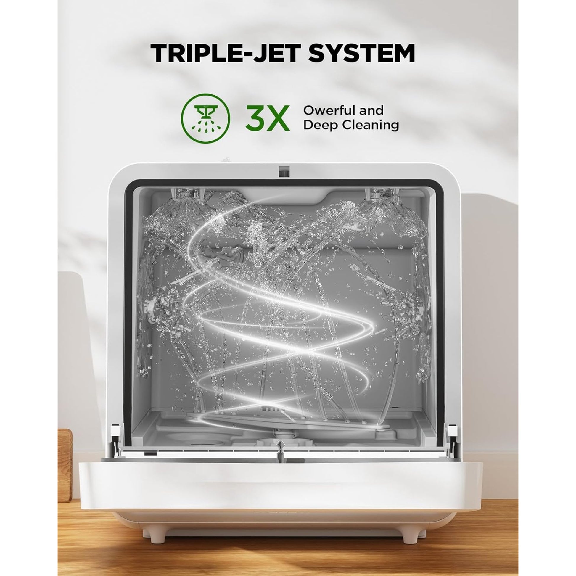 Philergo Portable Countertop Dishwashers, Compact Smart Dishwashers Built-In Water Tank, Air-Dry, 7 Washing Programs, Dual Supply, 360° Dual Spray, App Control for Apartment, RV
