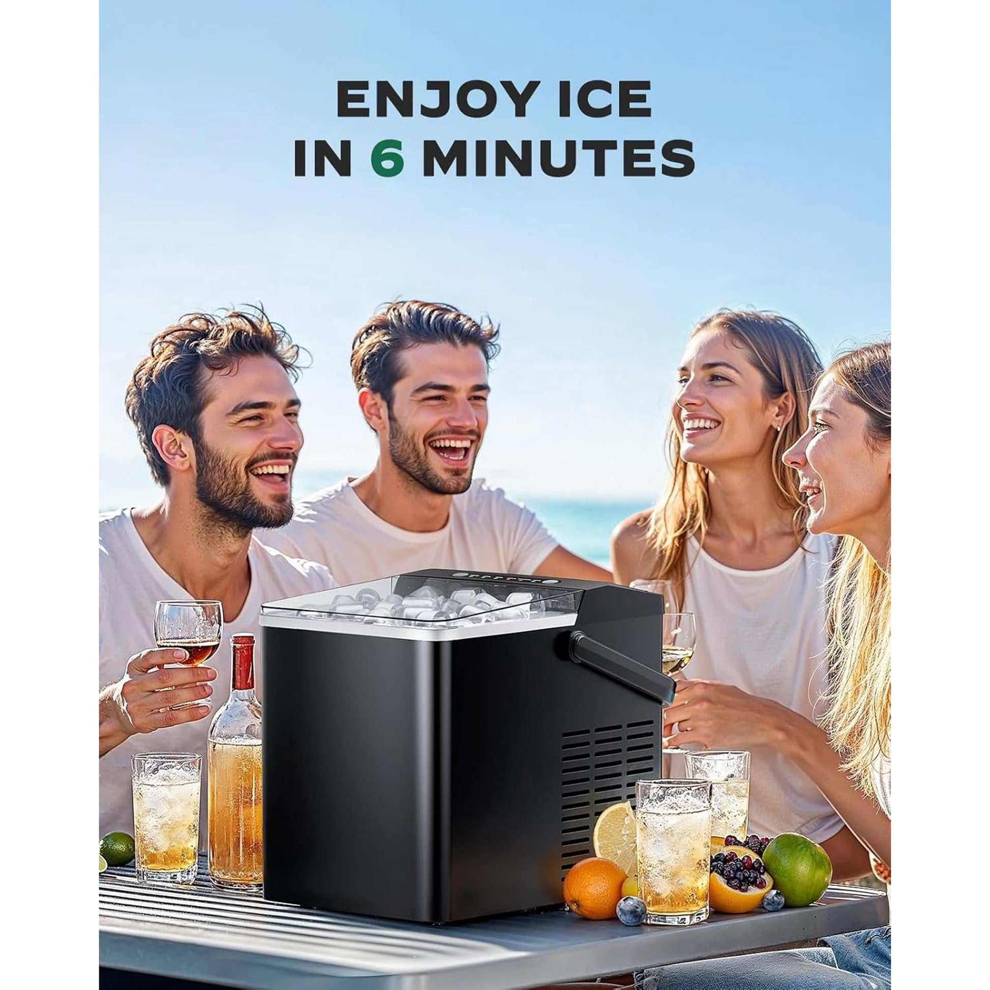 Philergo Compact Ice Maker – Portable & Fast Bullet-Shaped Ice Production. Step up your ice-making with the Philergo compact ice maker. This portable ice maker produces bullet-shaped ice cubes in just 6 minutes, ensuring you always have fresh ice for your drinks. Stylish and compact, it features a removable ice basket for easy storage and an automatic cleaning function for effortless maintenance. Its small size makes it perfect for any space, whether at home, in an RV, or on an adventure. With the Philergo ice maker, you can quickly chill your favorite drinks wherever you are!