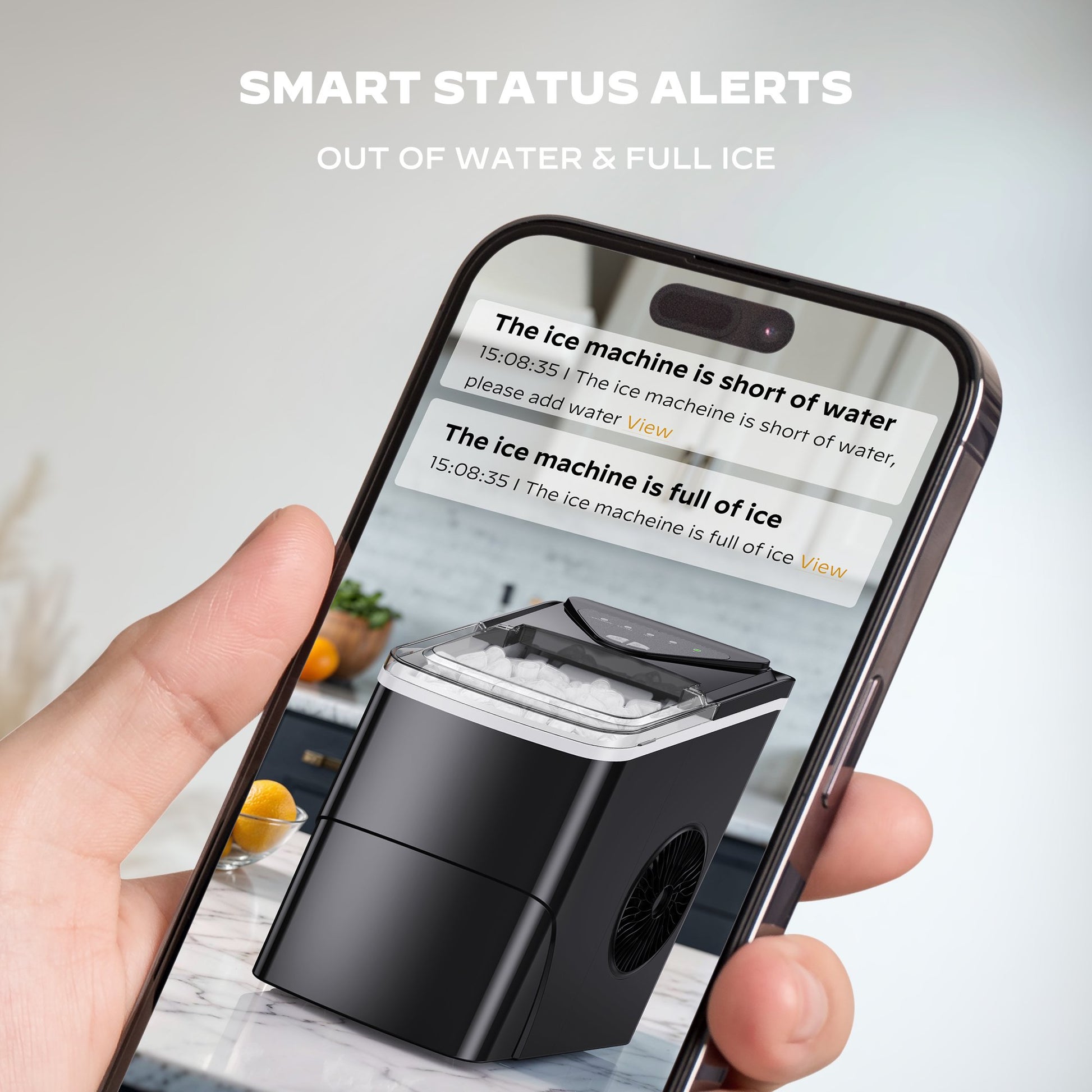 - 🧊Take full command of your countertop ice maker using the dedicated mobile app. Start or stop ice production, adjust ice cube sizes, and receive low-water notifications remotely.