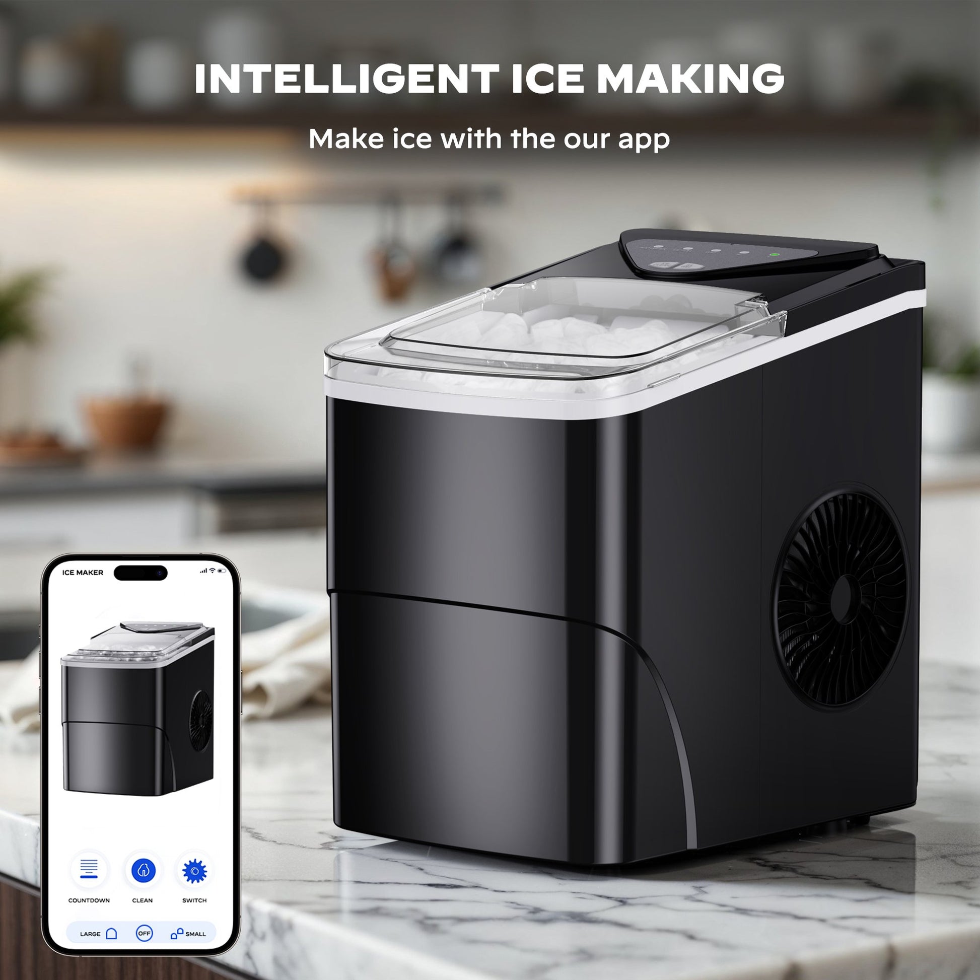 Philergo Smart Countertop Ice Maker with APP Control, 9Pcs/6Mins, 26lbs/24Hrs, 2 Ice Cube Sizes, Portable Bullet Ice Maker Self-Cleaning, Quiet Ice Maker Machine for Home KitcherOffice RV, Black
