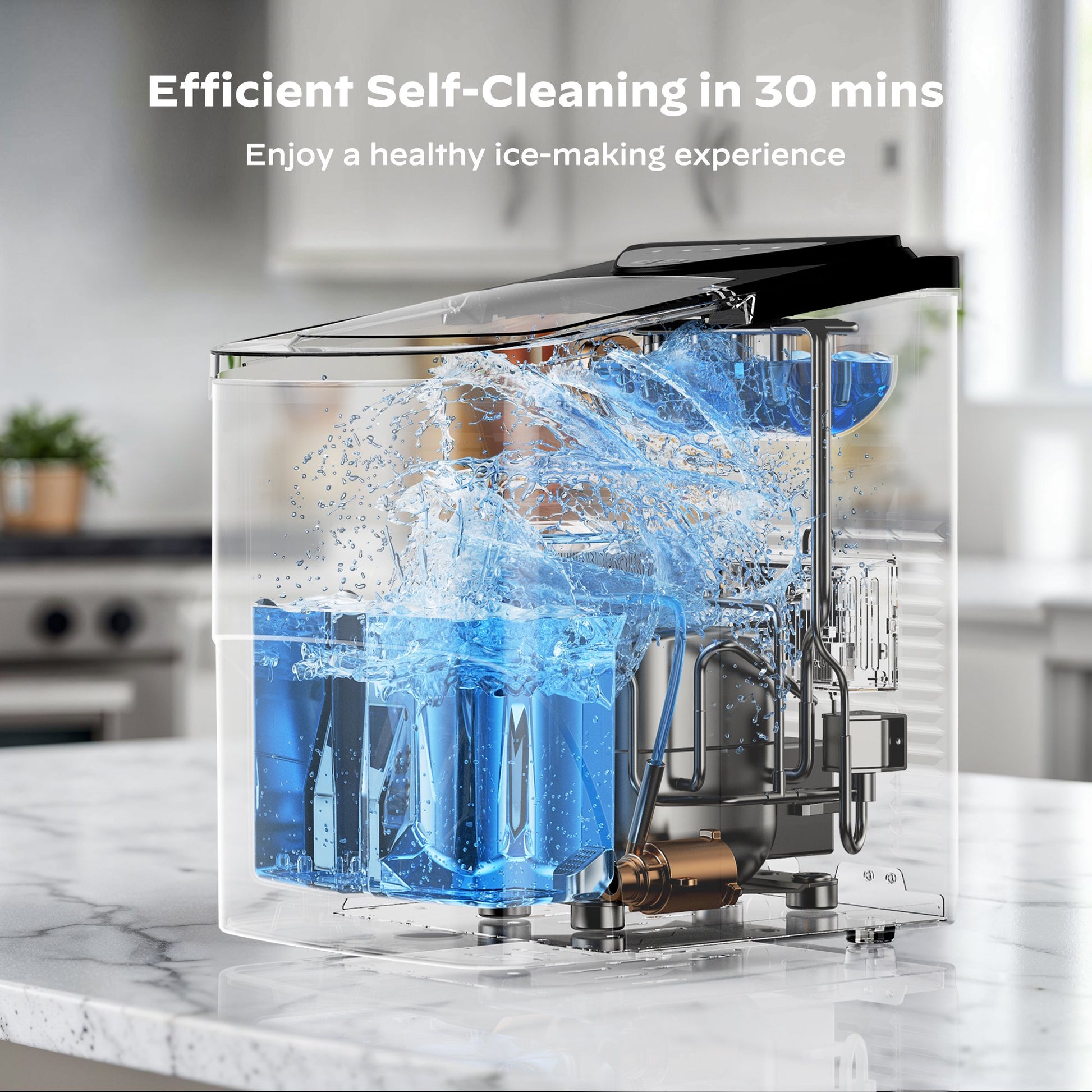 - 🧊Equipped with an auto-cleaning feature, the ice maker completes a full cleaning cycle in just 30 minutes. Some models circulate water to clean every corner inside. Ensure the interior is dry before storage to prolong its service life and maintain hygiene.
