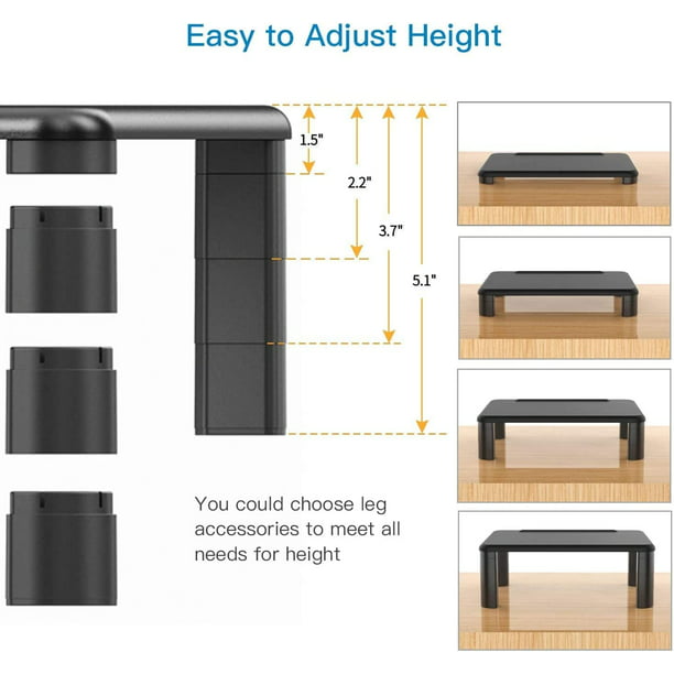 The computer monitor stand riser is designed with three adjustable heights-2.2 inches, 3.7 inches and 5.1 inches.