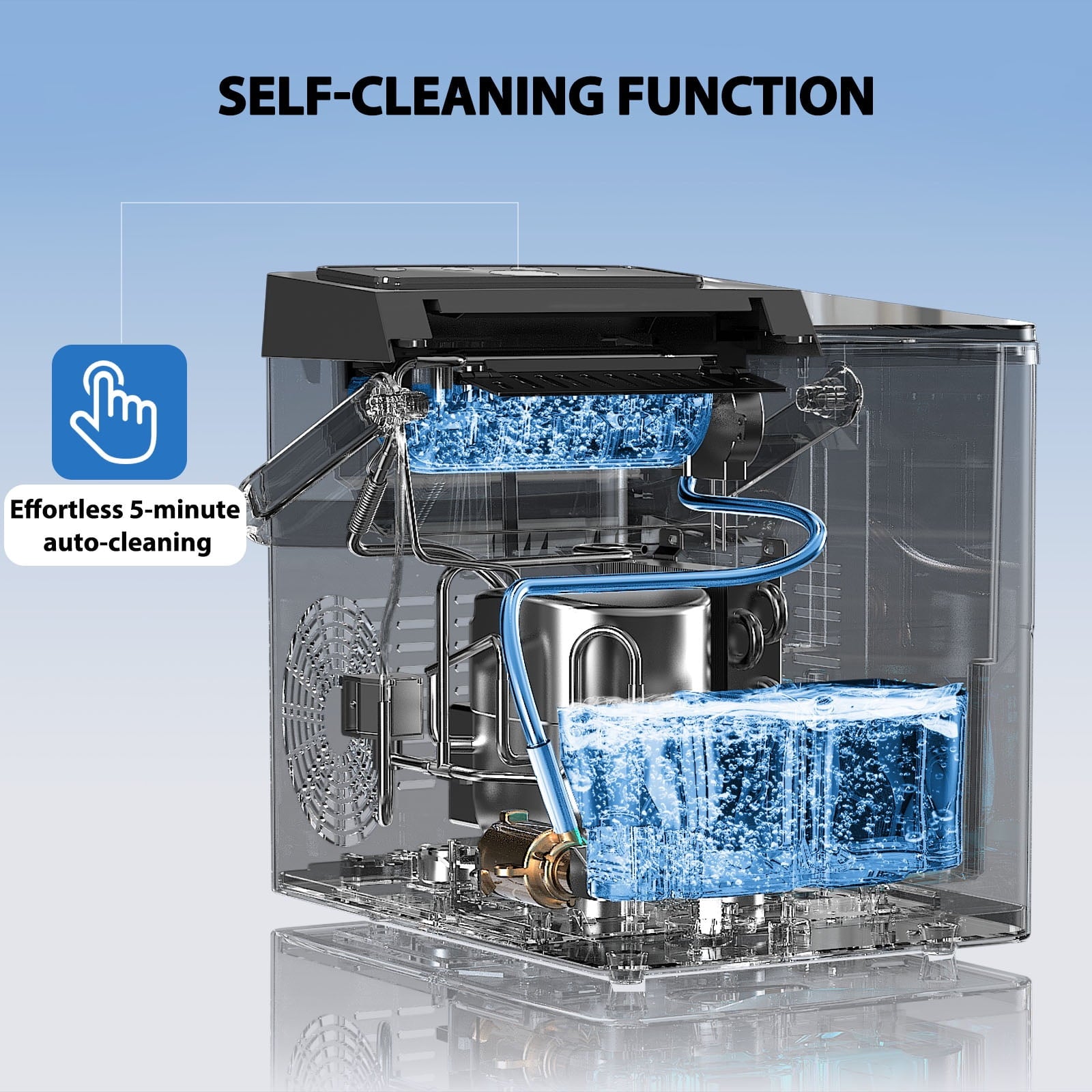 Self-Cleaning Fuction: The ice maker machine takes care of routine cleaning with the auto cleaning mode. Just add water and tap the ‘Clean’ button to start. In 5 minutes, your ice maker is refreshed and ready to go. After cleaning, remove the drain plug to manually drain the water.